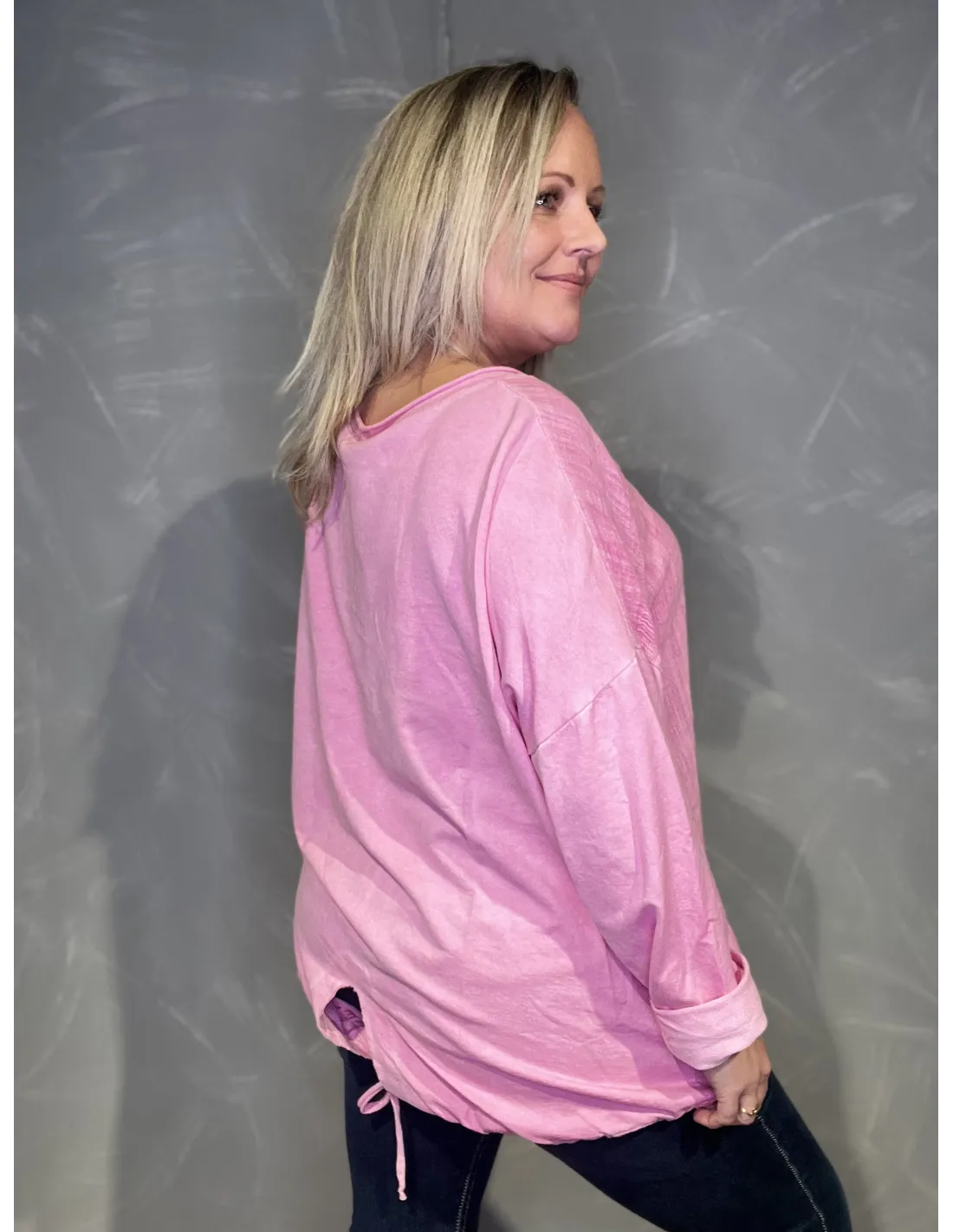 Pink bluse med struktur og snørre til kvinder – TIPPY Collection