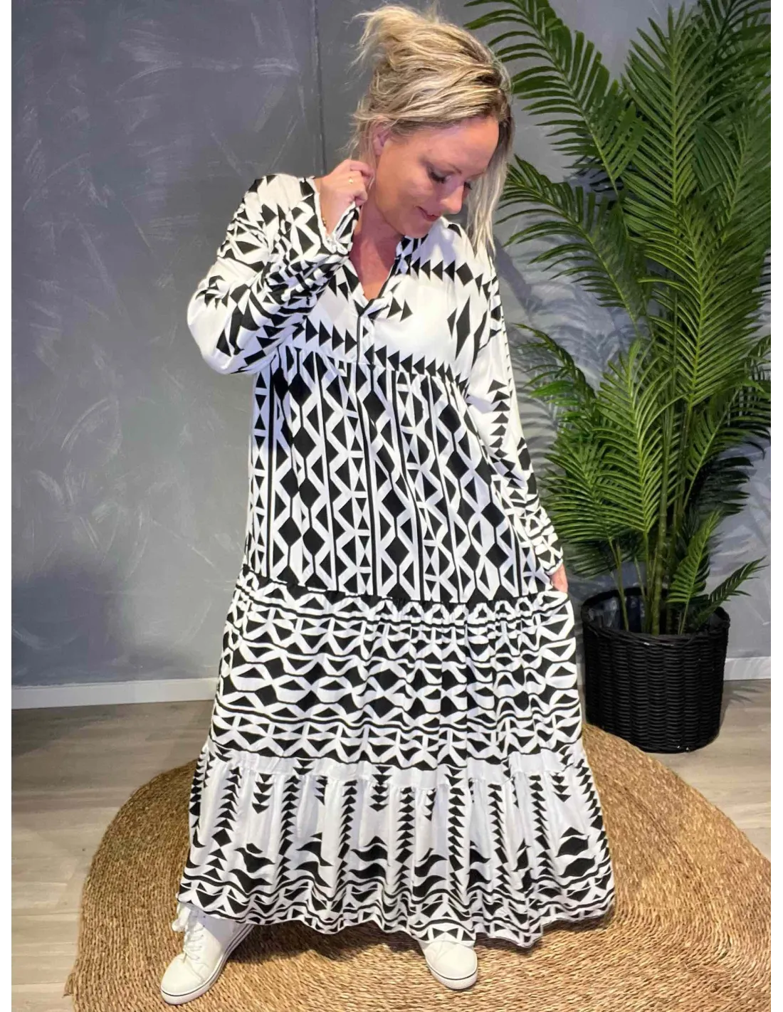 Maxikjole med grafisk print | Sort print | 34504