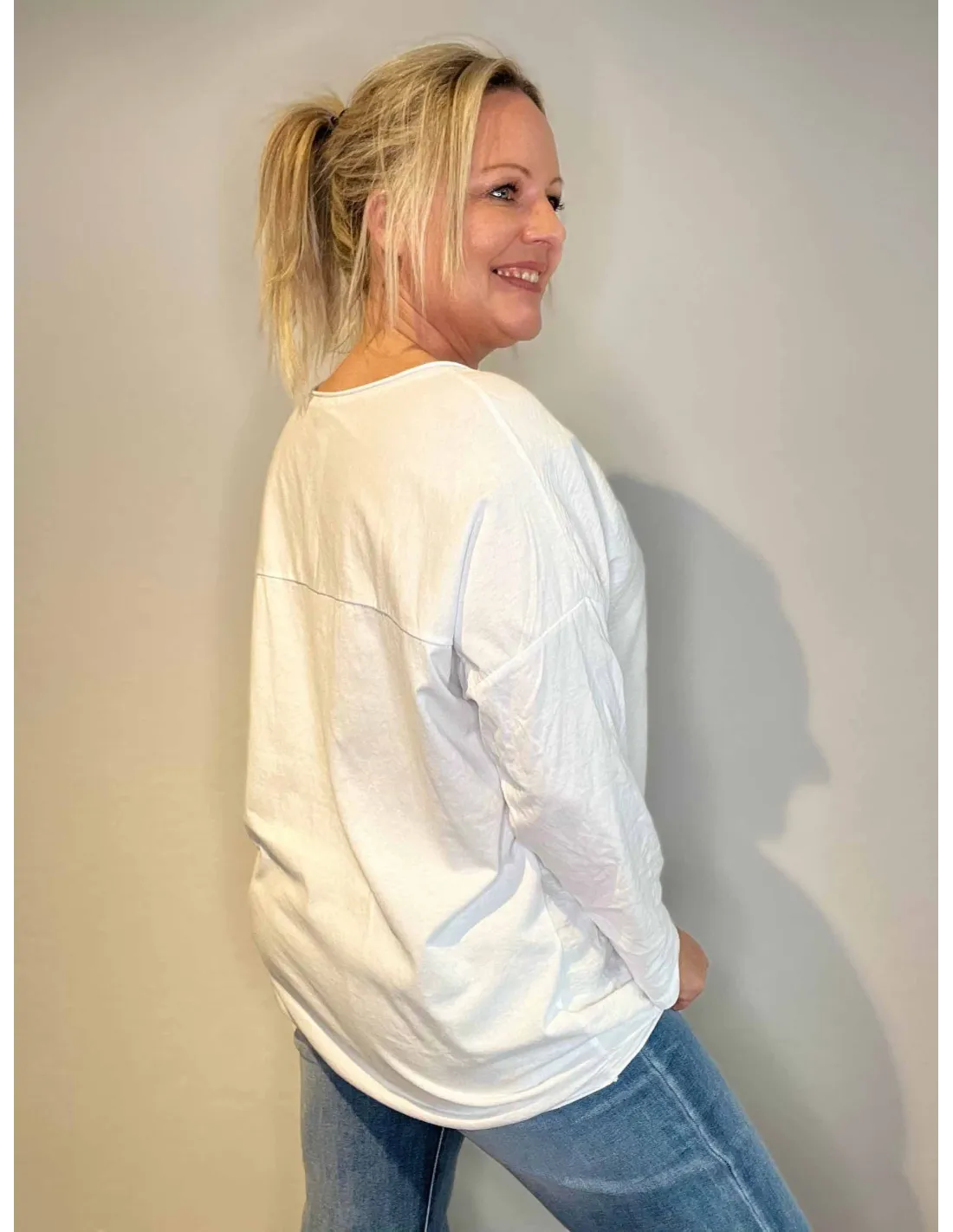 35166 BE KIND LANGÆRMET BLUSE HVID