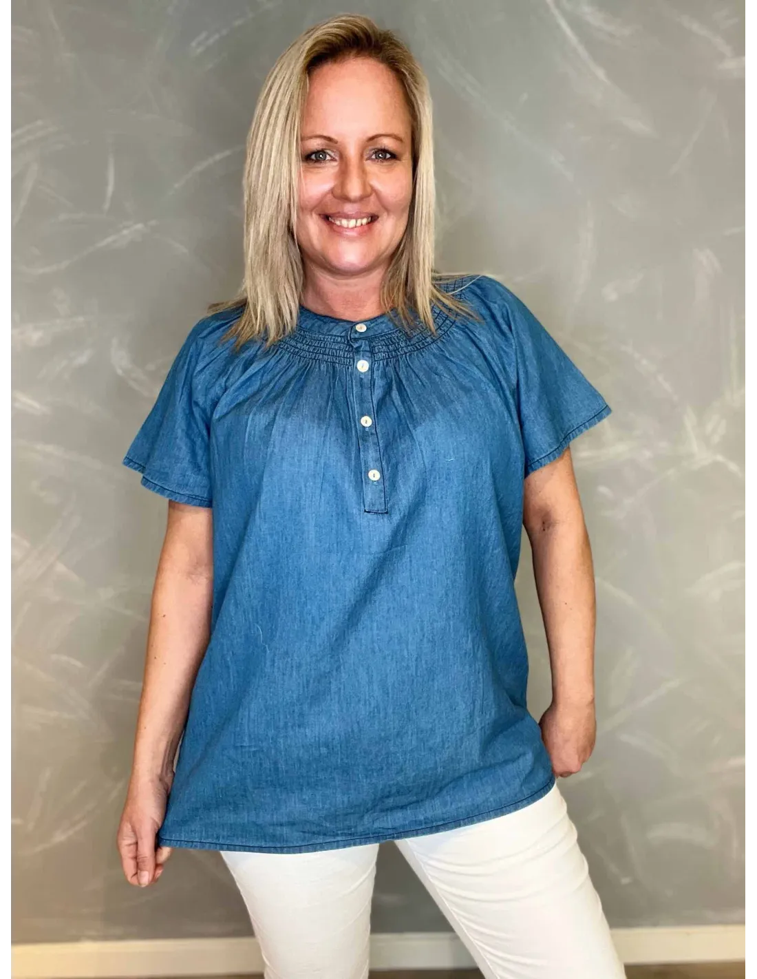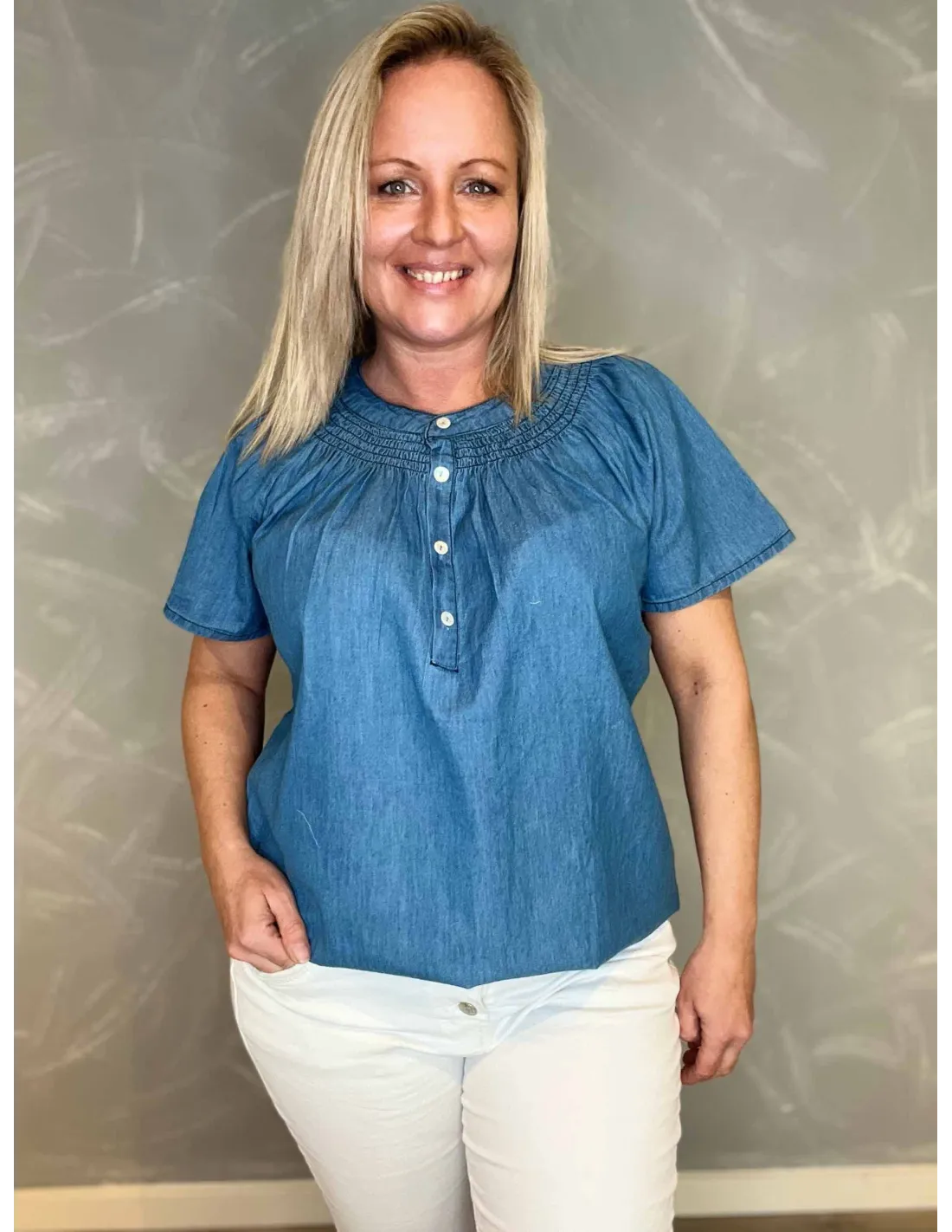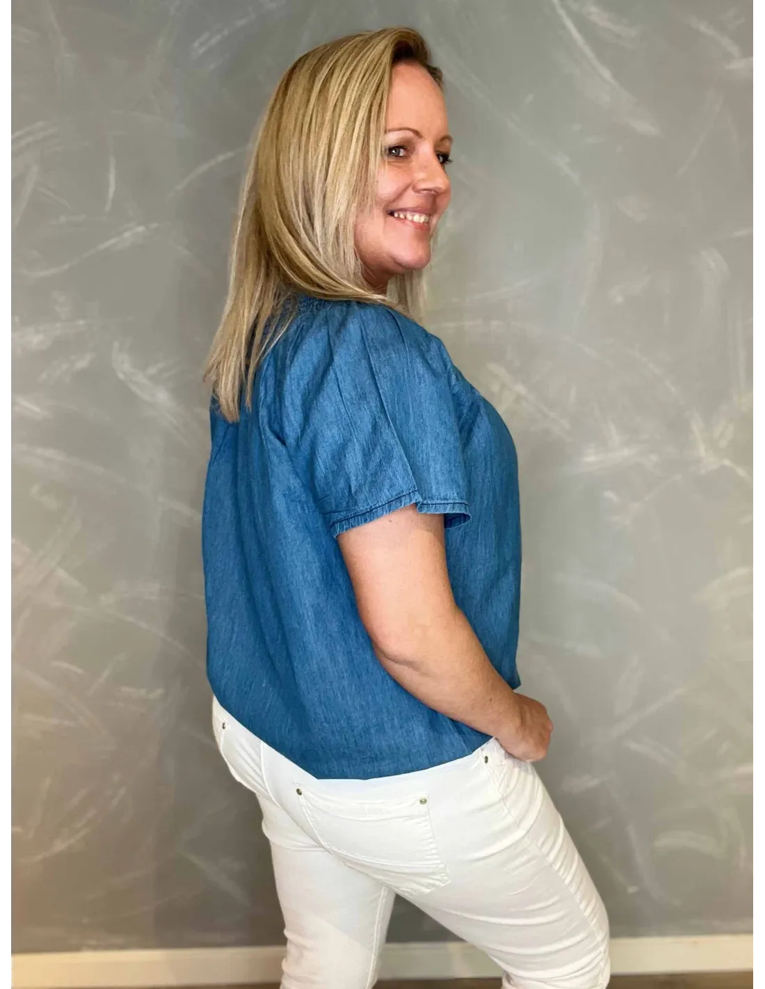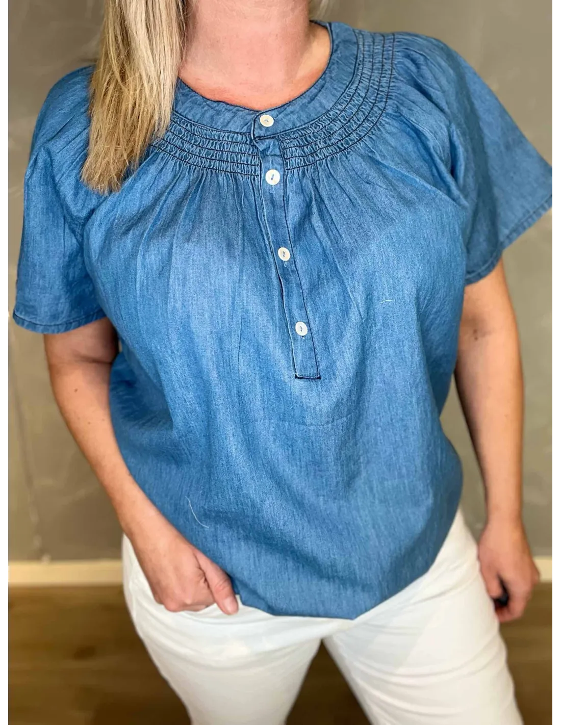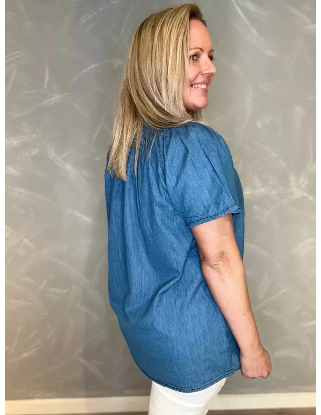 Denne denim skjortebluse til kvinder fra Design by TIPPY er fremstillet i 100% TENCEL.