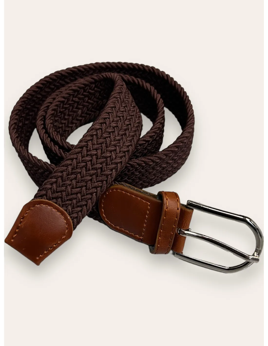 • Detaljer: Elastisk vævning, læderdetaljer, metalspænde