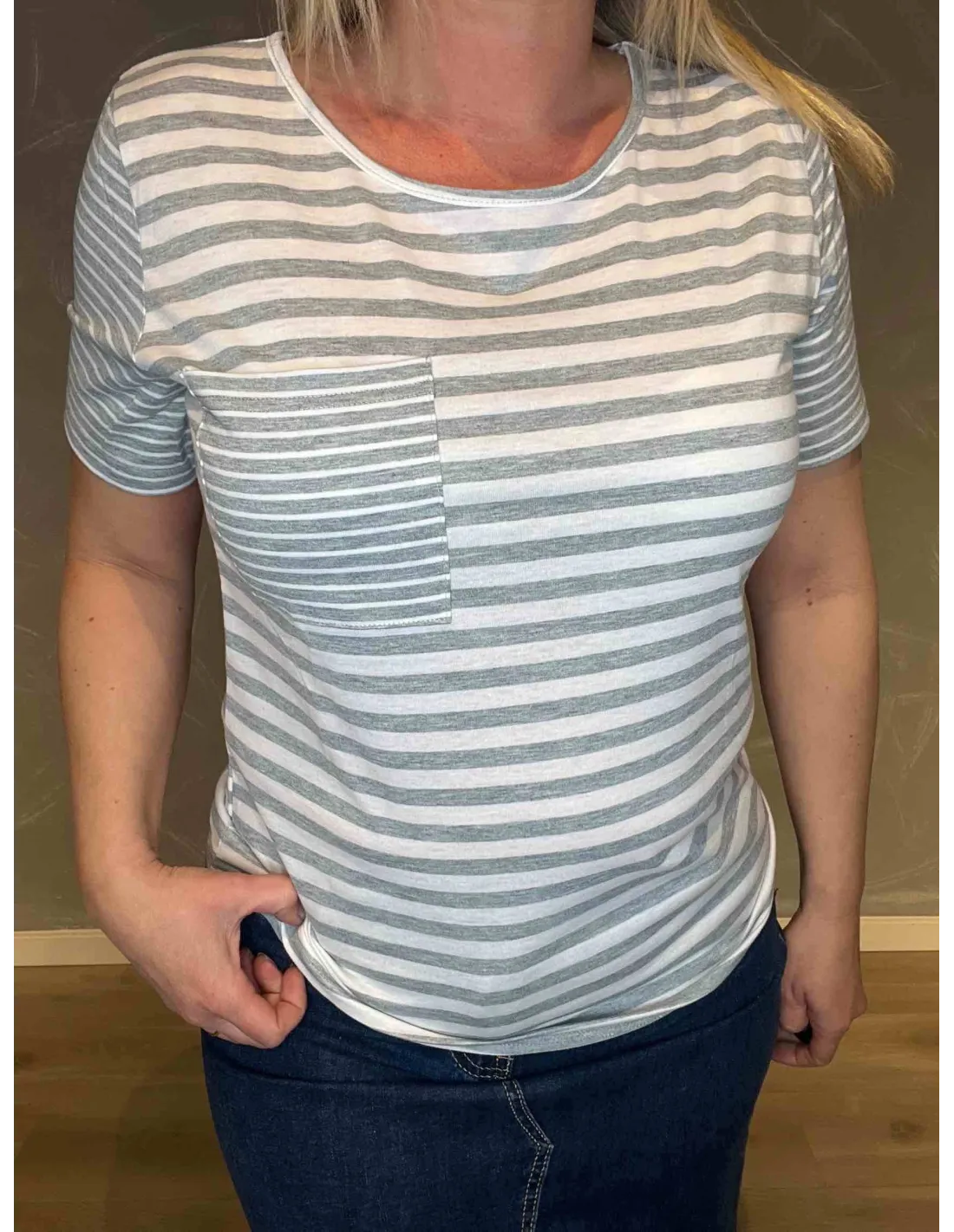 Kontraststriber på ærmer og lomme skaber et moderne udtryk.