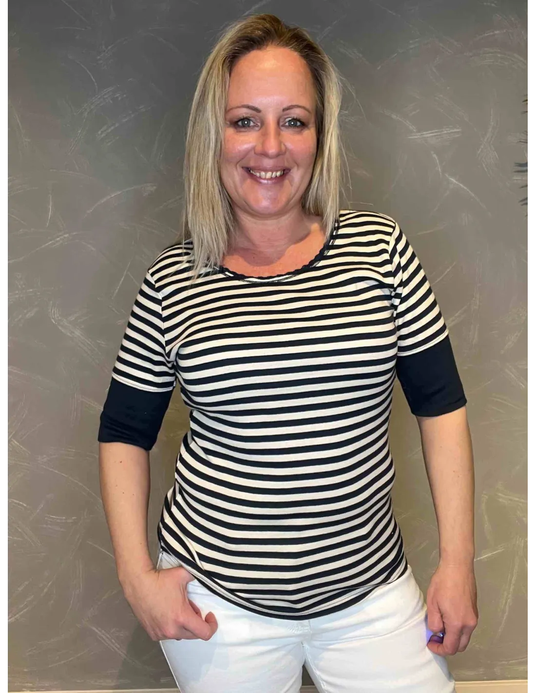 Denne stribede bluse til kvinder fra Design by Tippy er lavet i 100% bomuld.