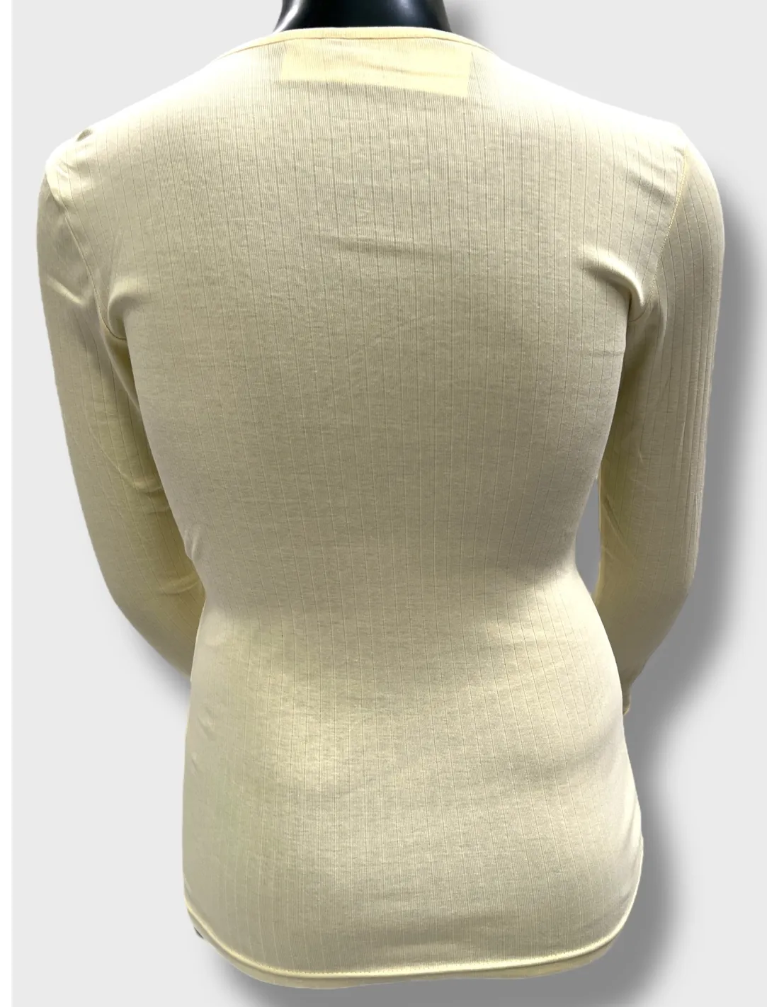 Denne langærmede rib bluse til kvinder fra TIPPY Basic Collection er fremstillet i 100% blød bomuld med en fleksibel og behagelig ribbet struktur, der tilpasser sig kroppen uden at stramme. Den friske kiwi-farve giver et energisk og moderne udtryk, perfekt til både forårslooks og hverdagsgarderoben.