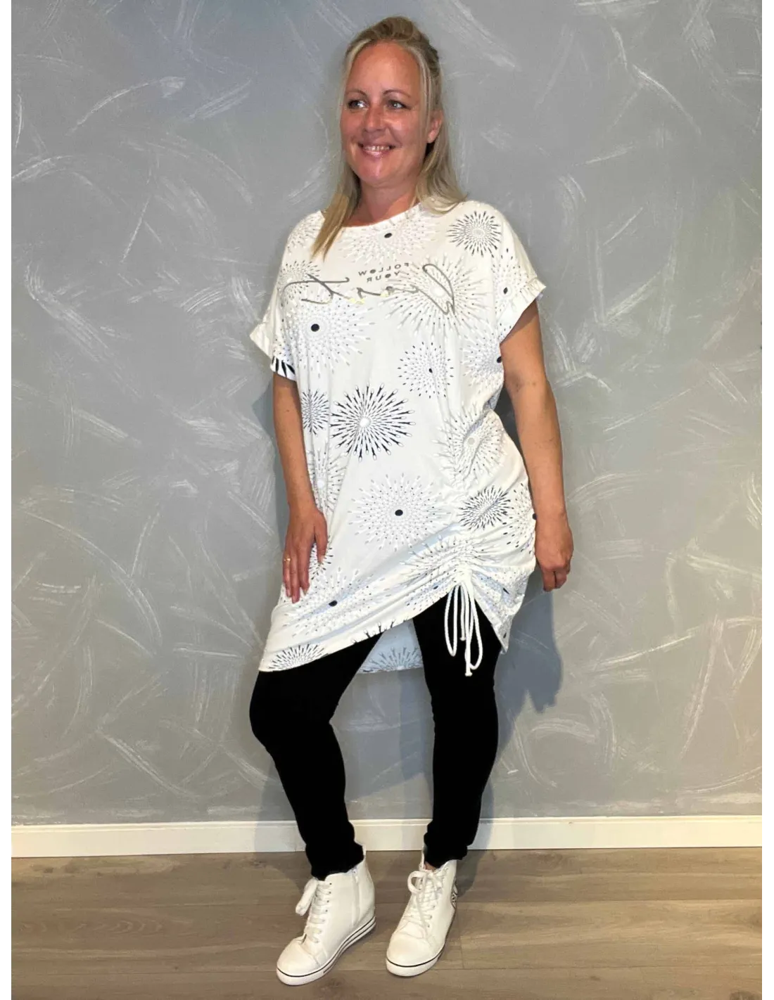 T-shirt kjole med Snøre | Hvid/Blå| TIPPY