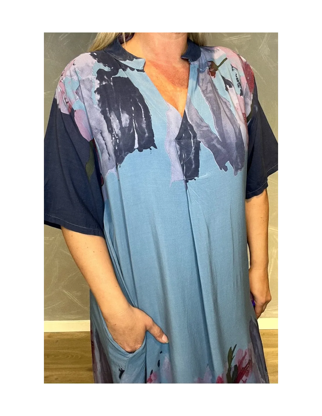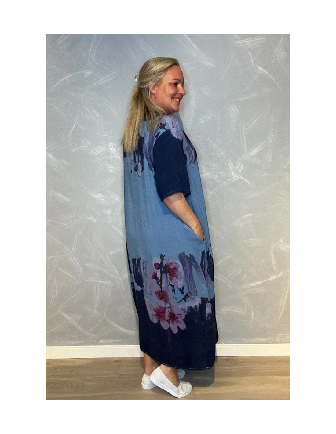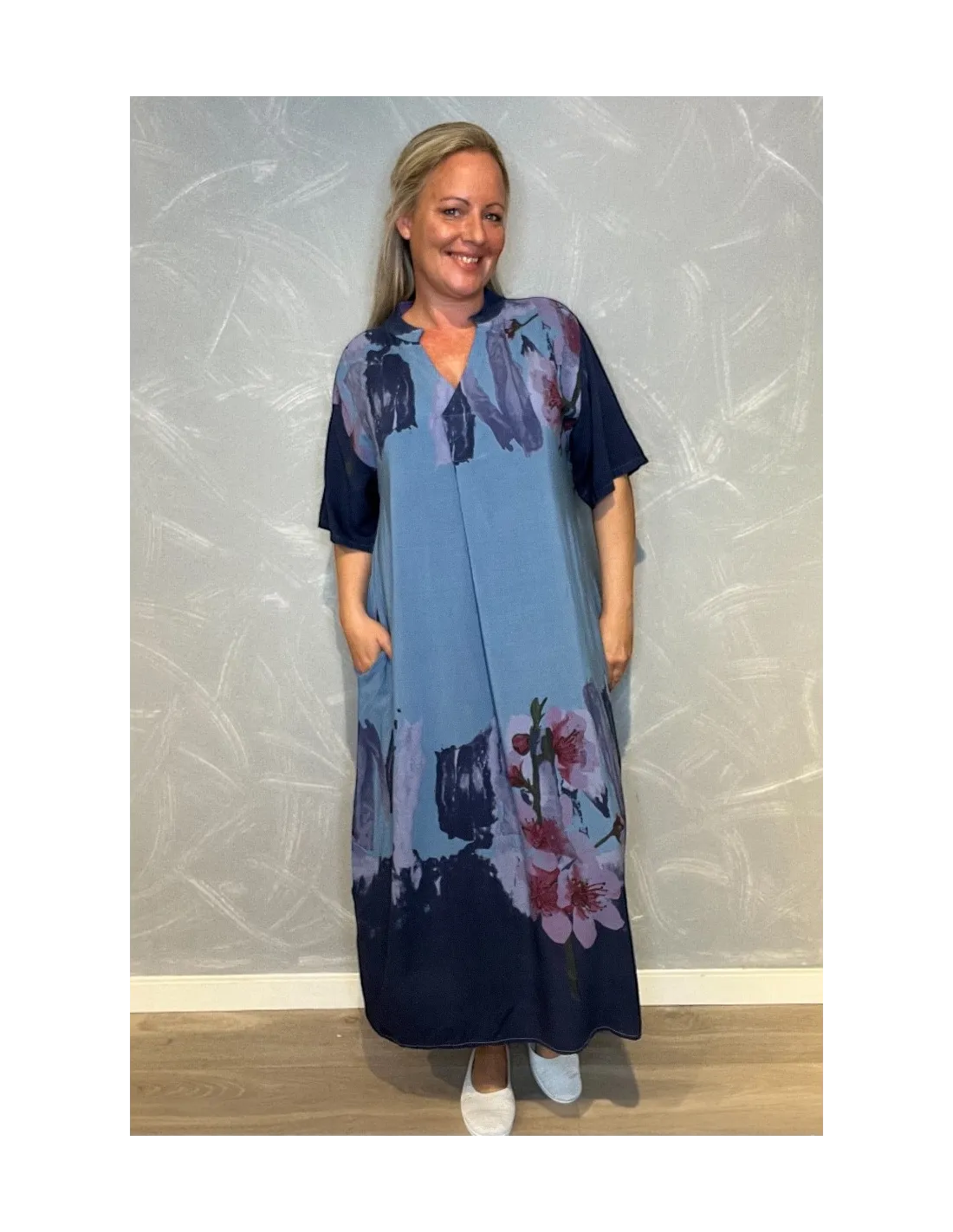Maxi kjole med blomsterprint og lommer | Army | 35496