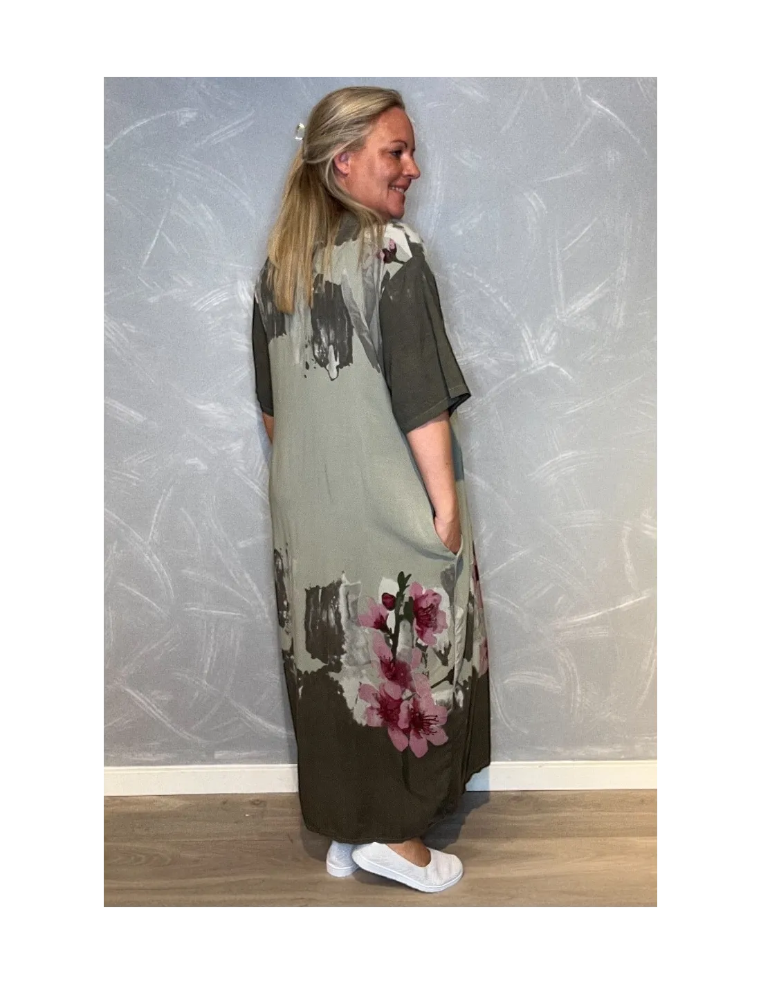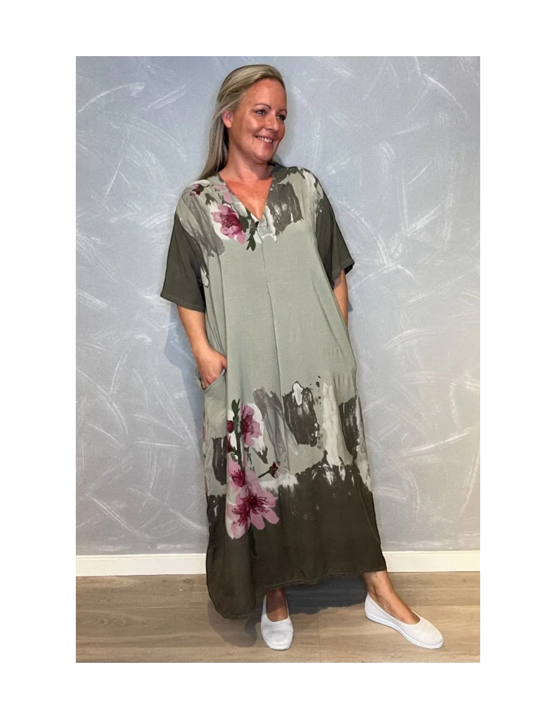 Maxi kjole med blomsterprint og lommer | Blå | 35496