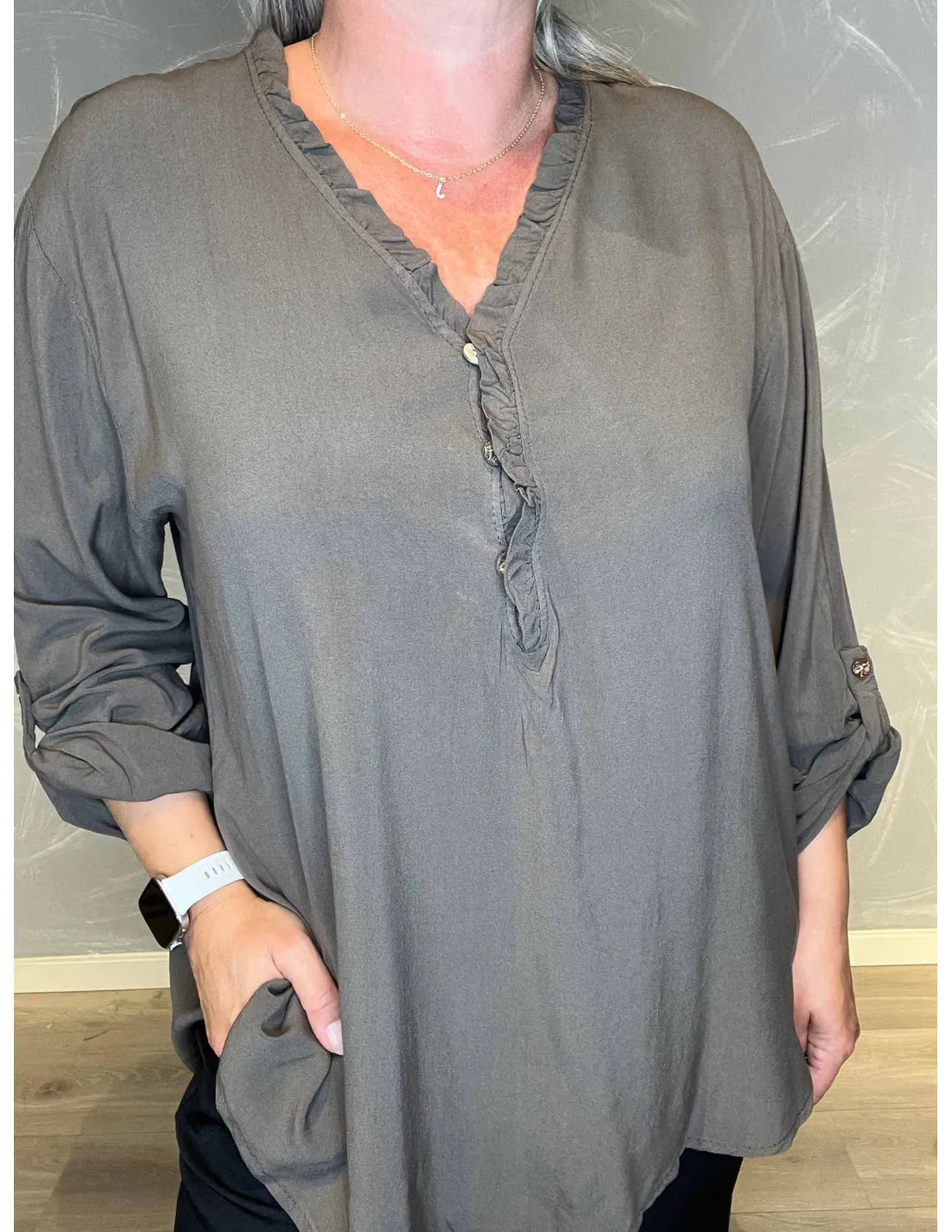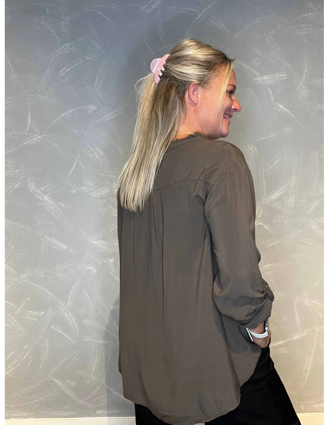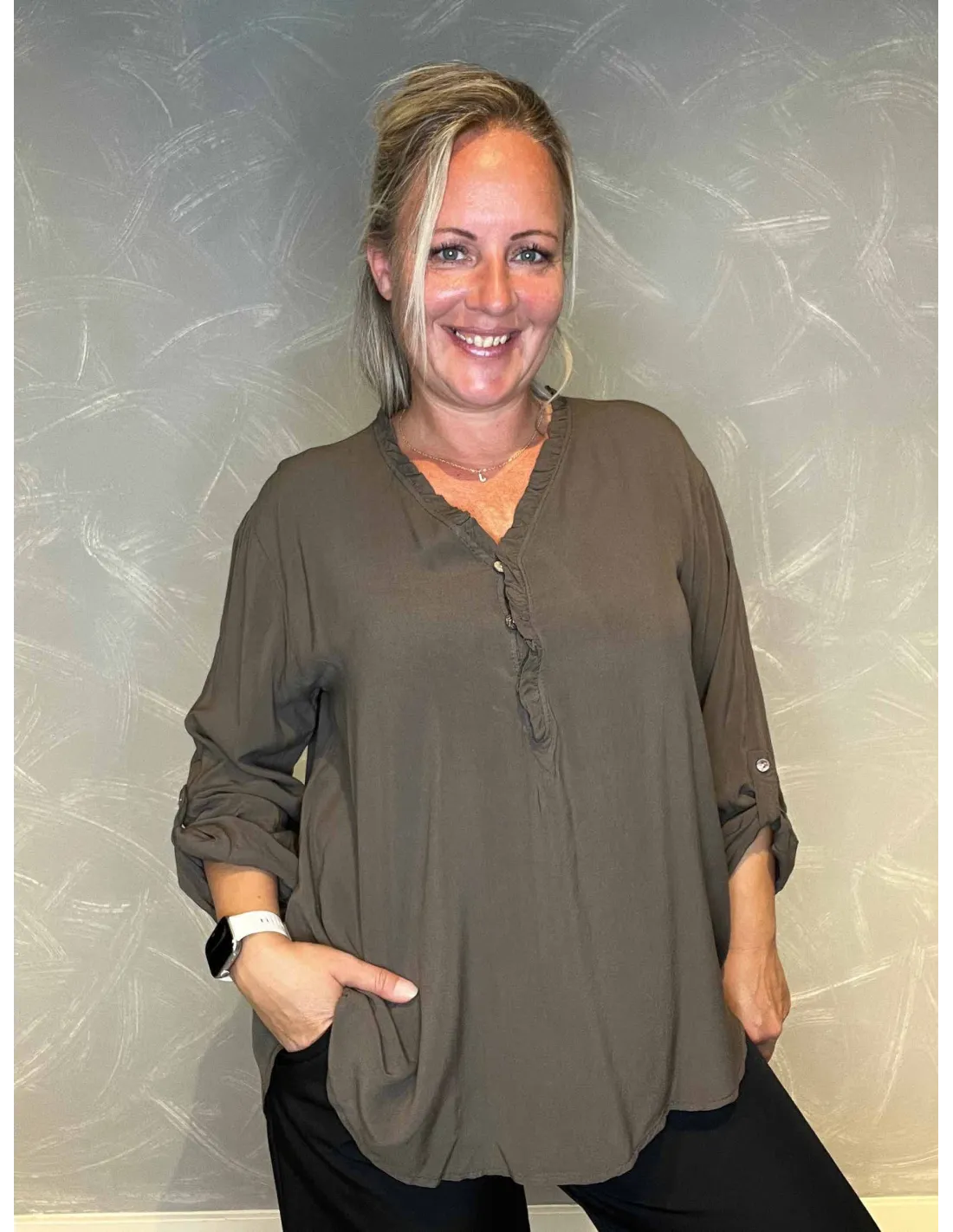 Skjorte Bluse med Flæser | Mørk Brun | 35622