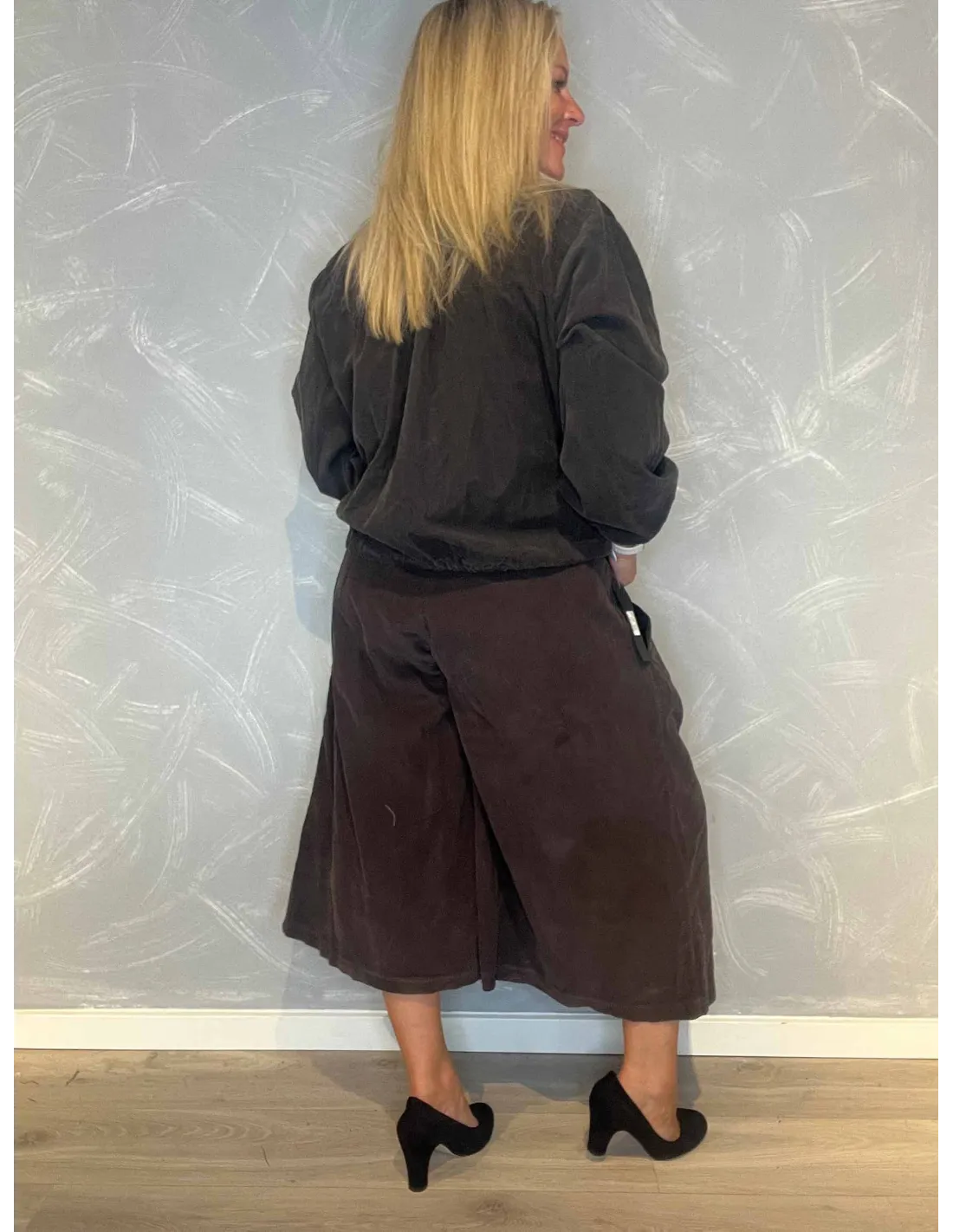 Kort fløjl jakke til kvinder i brun