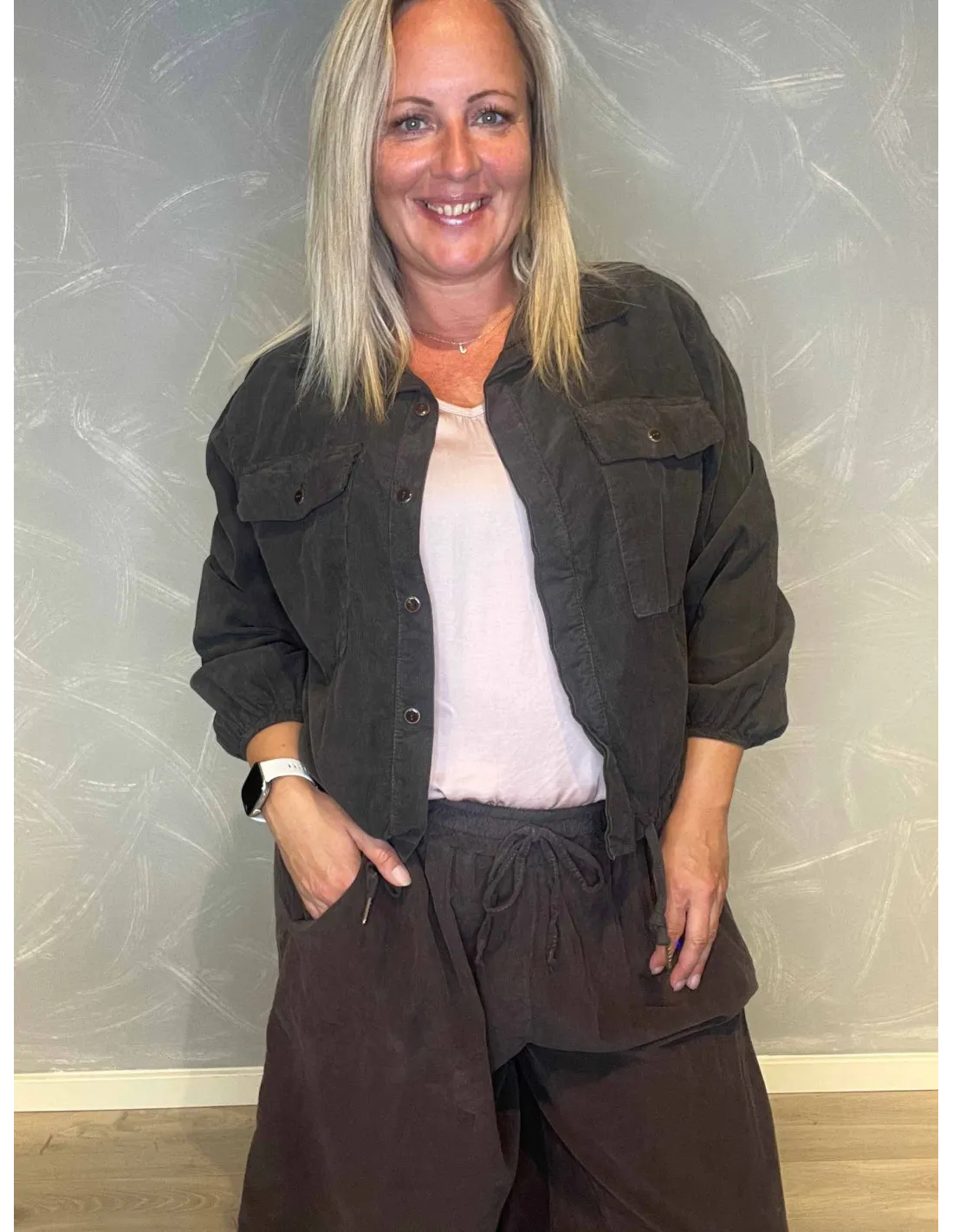 Denne kort fløjl jakke til kvinder fra TIPPY Collection er fremstillet i 100% bomuld