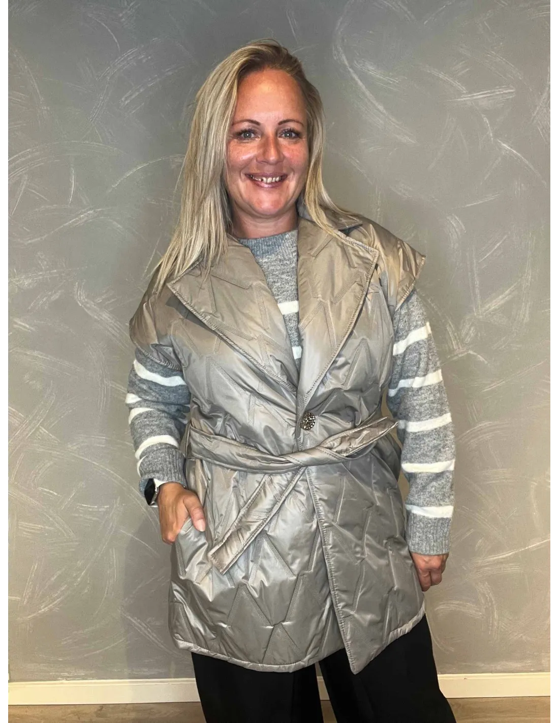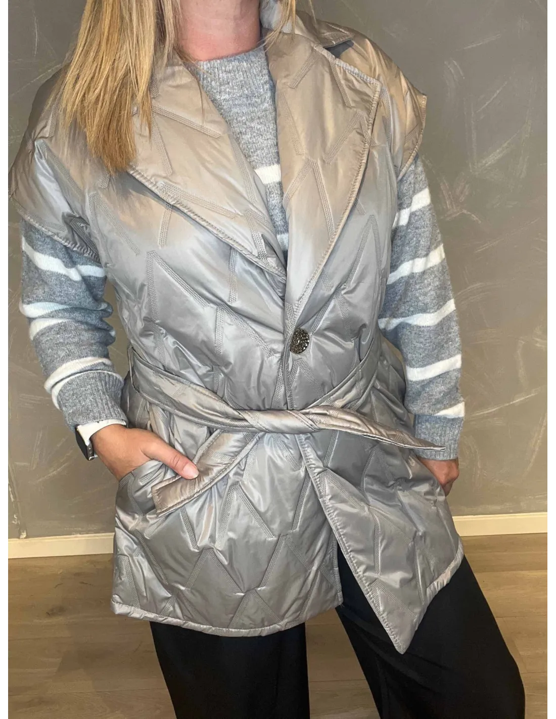 Lang klassisk vest til kvinder i beige