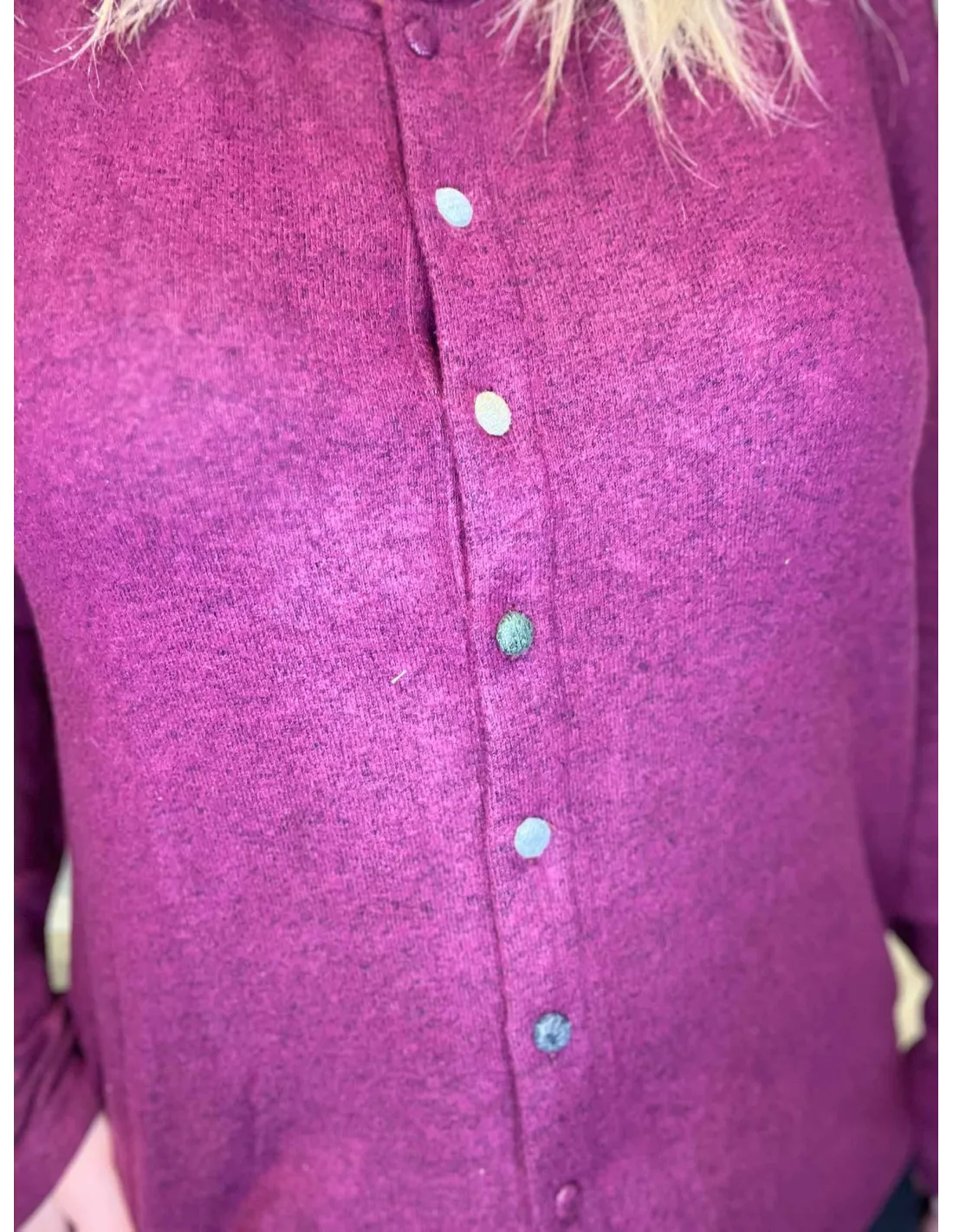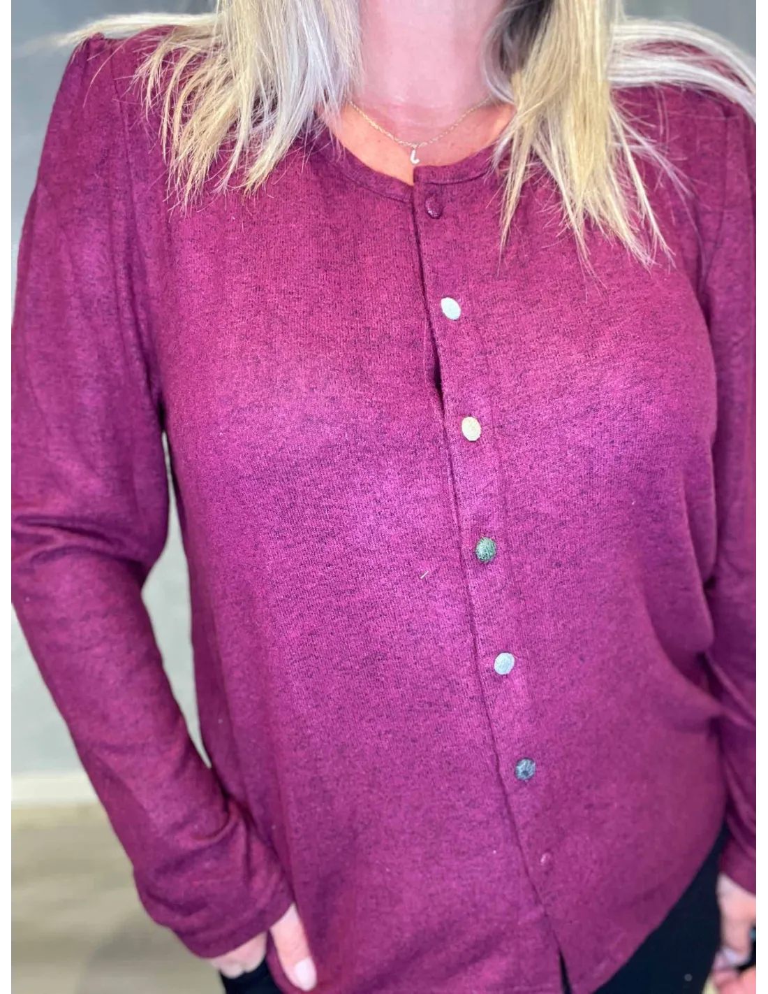Cardigan med farvede knapper til kvinder i grå meleret