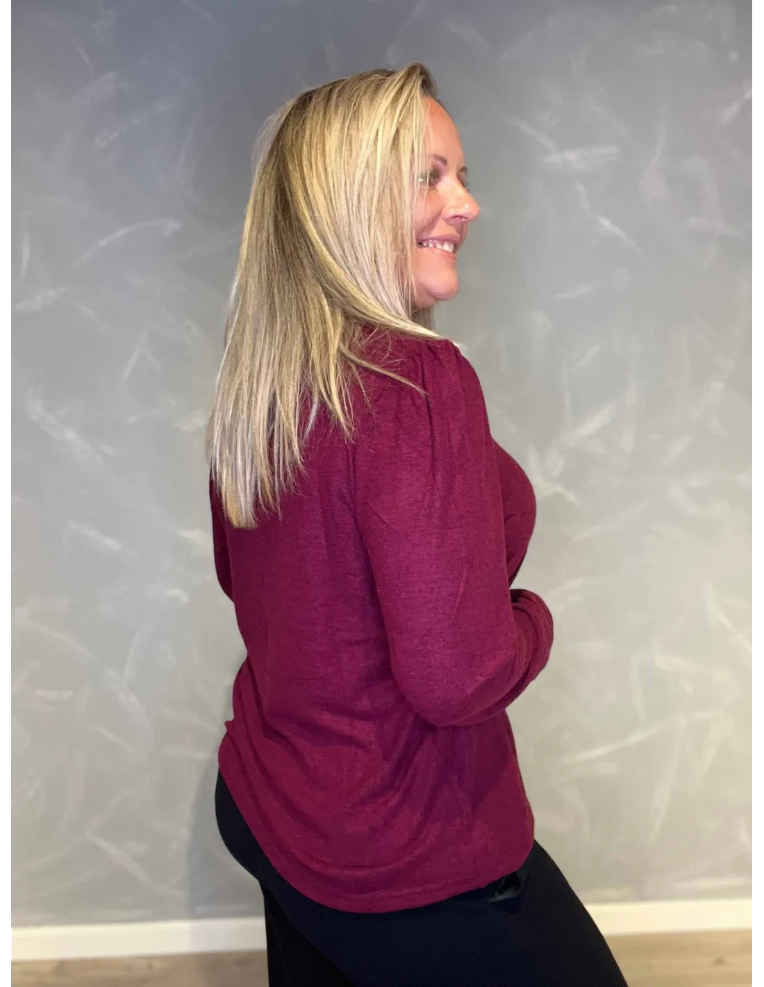 Pullover bluse til kvinder i meleret bordeaux