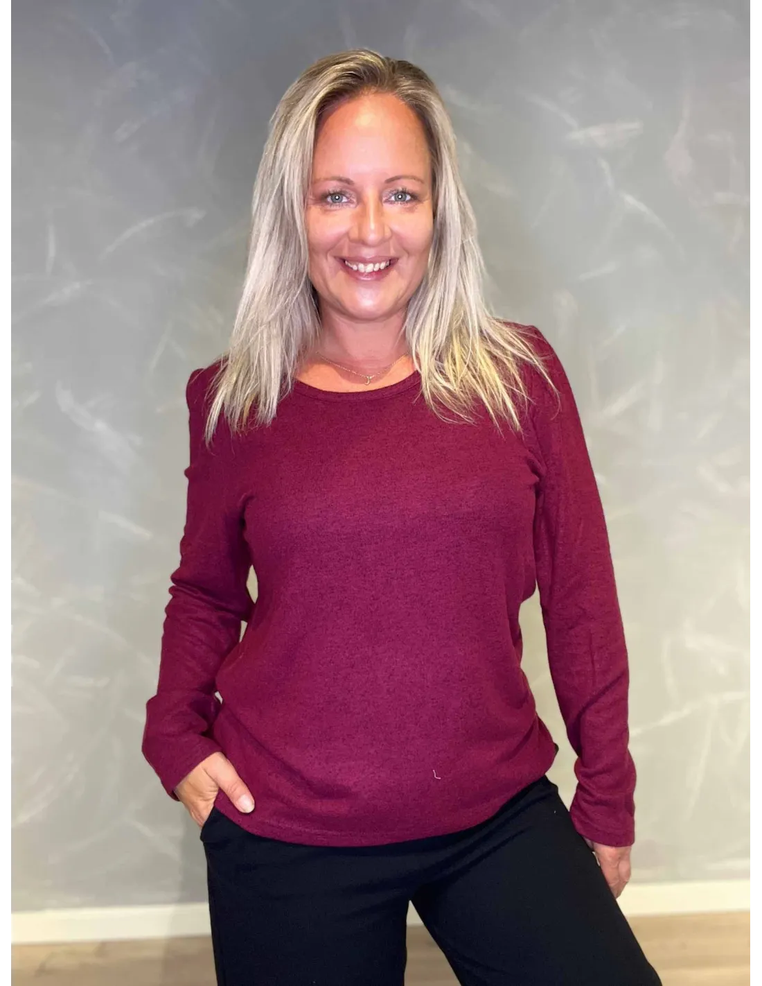 Cardigan med farvede knapper til kvinder i meleret bordeaux