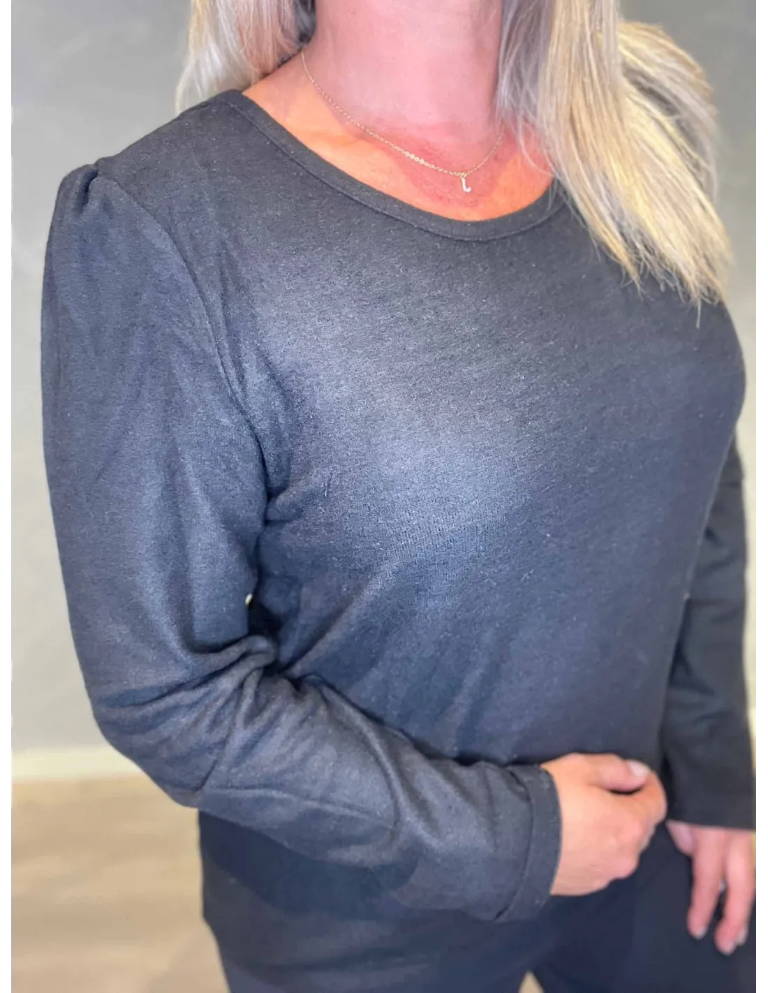 Pullover bluse til kvinder i meleret grå