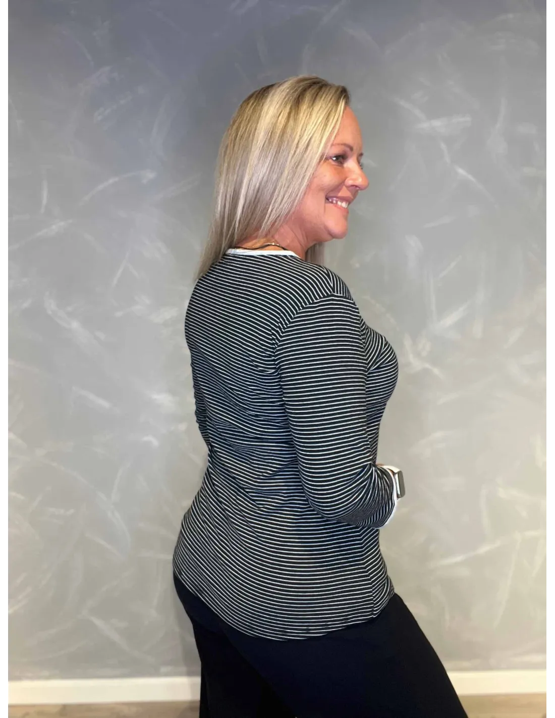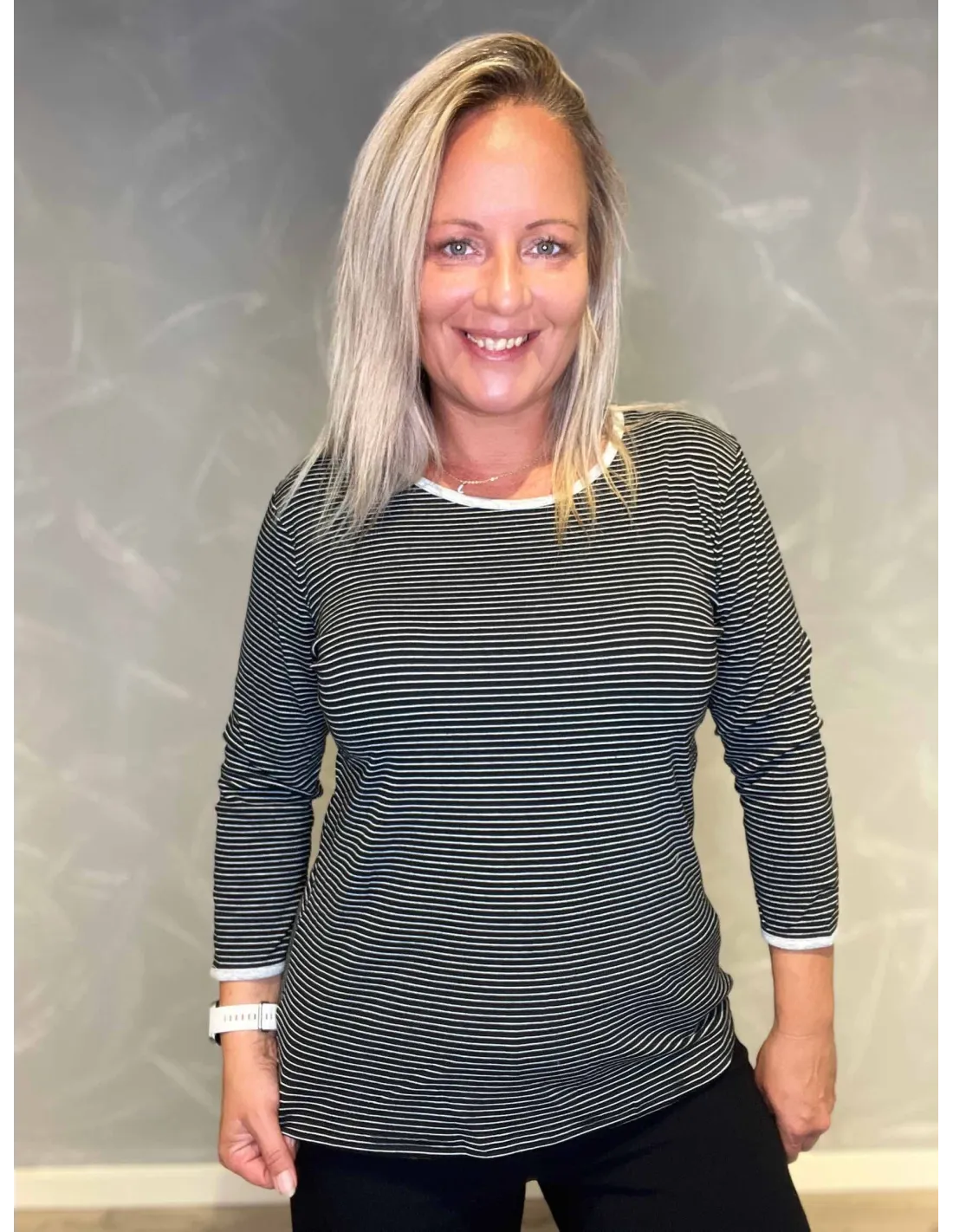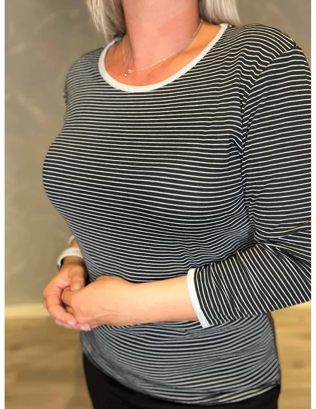 Stribet t-shirt til kvinder i grå/hvid