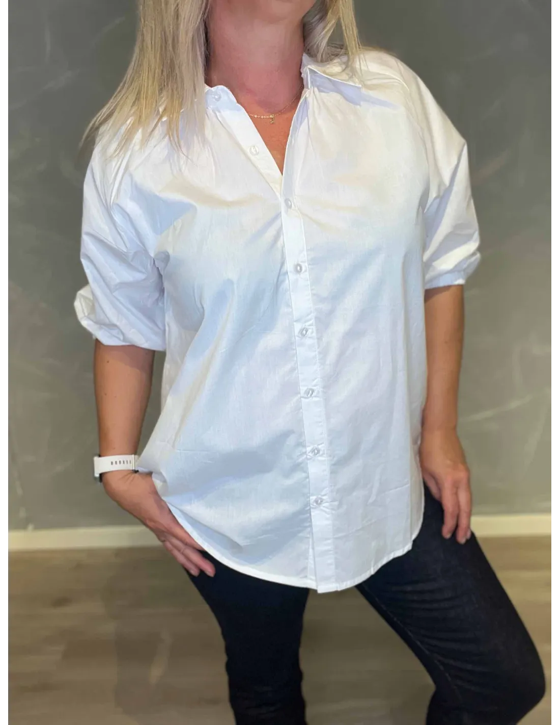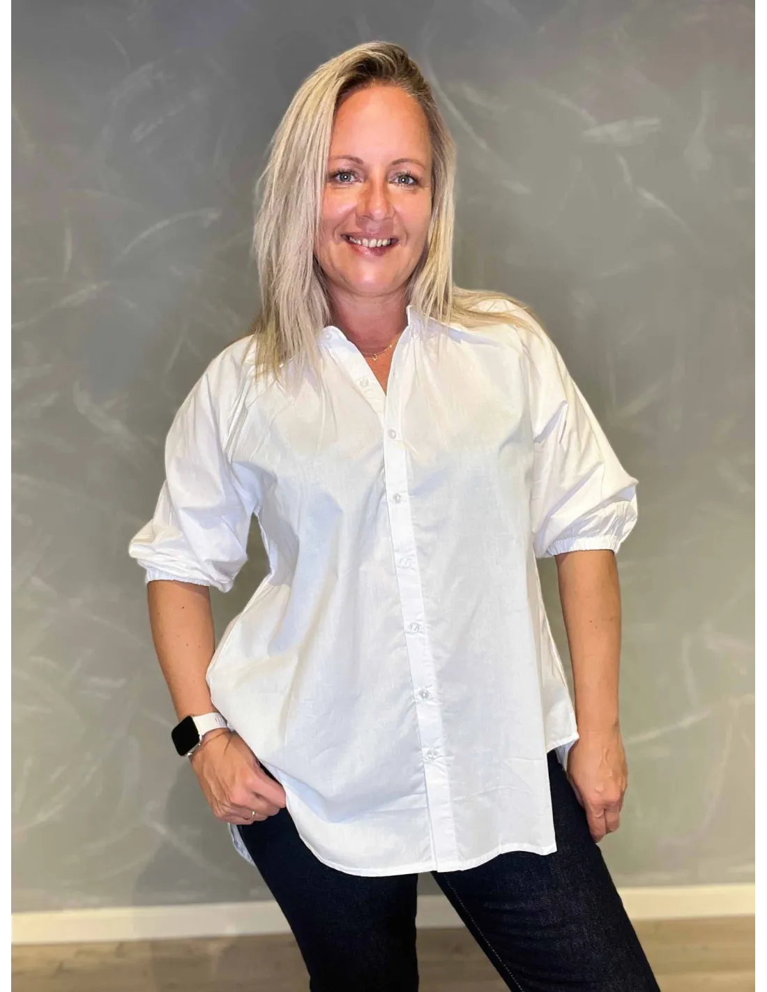 Skjorte med striber i hvid og lyseblå