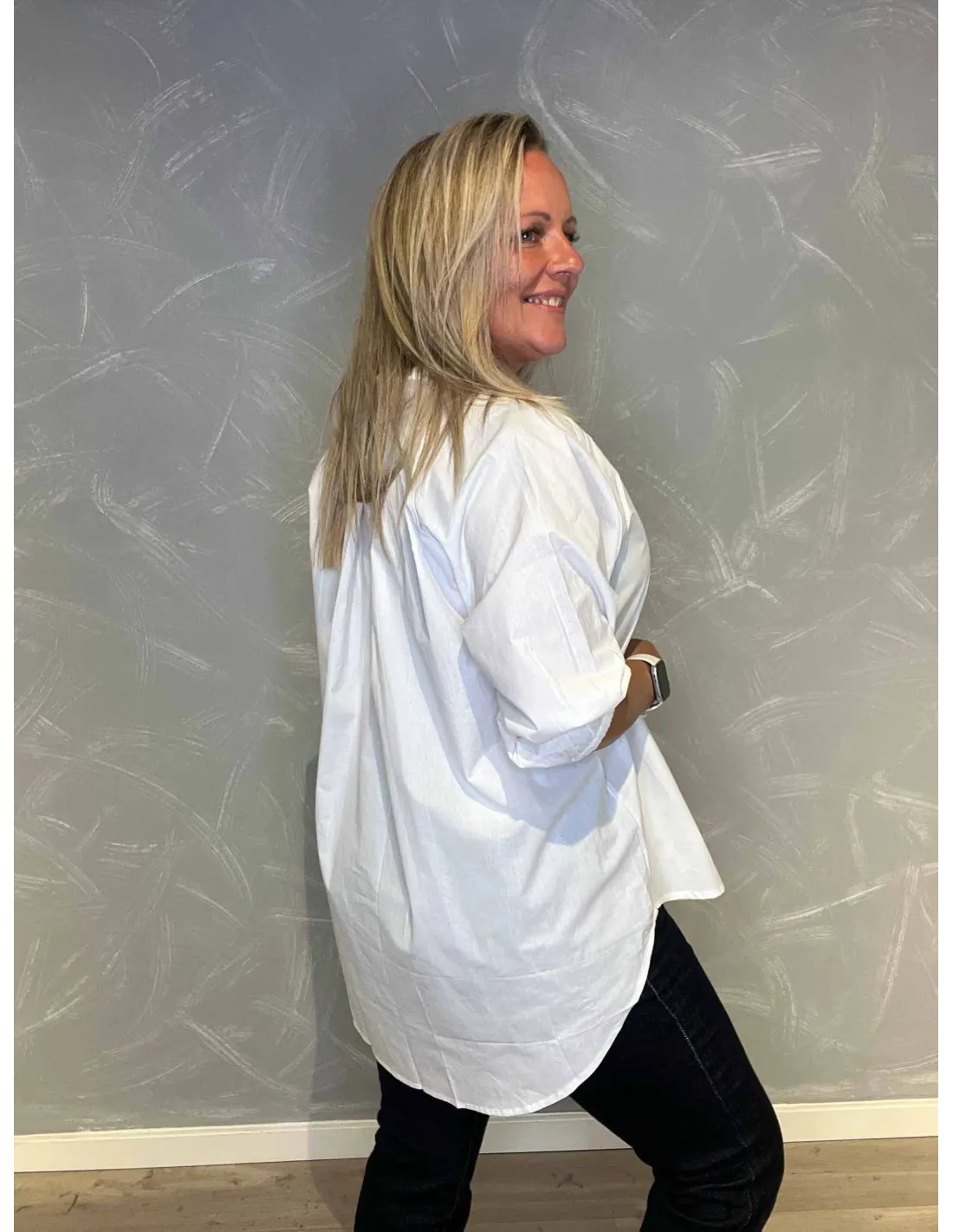 Blå stribet skjorte til kvinder i blå/hvid
