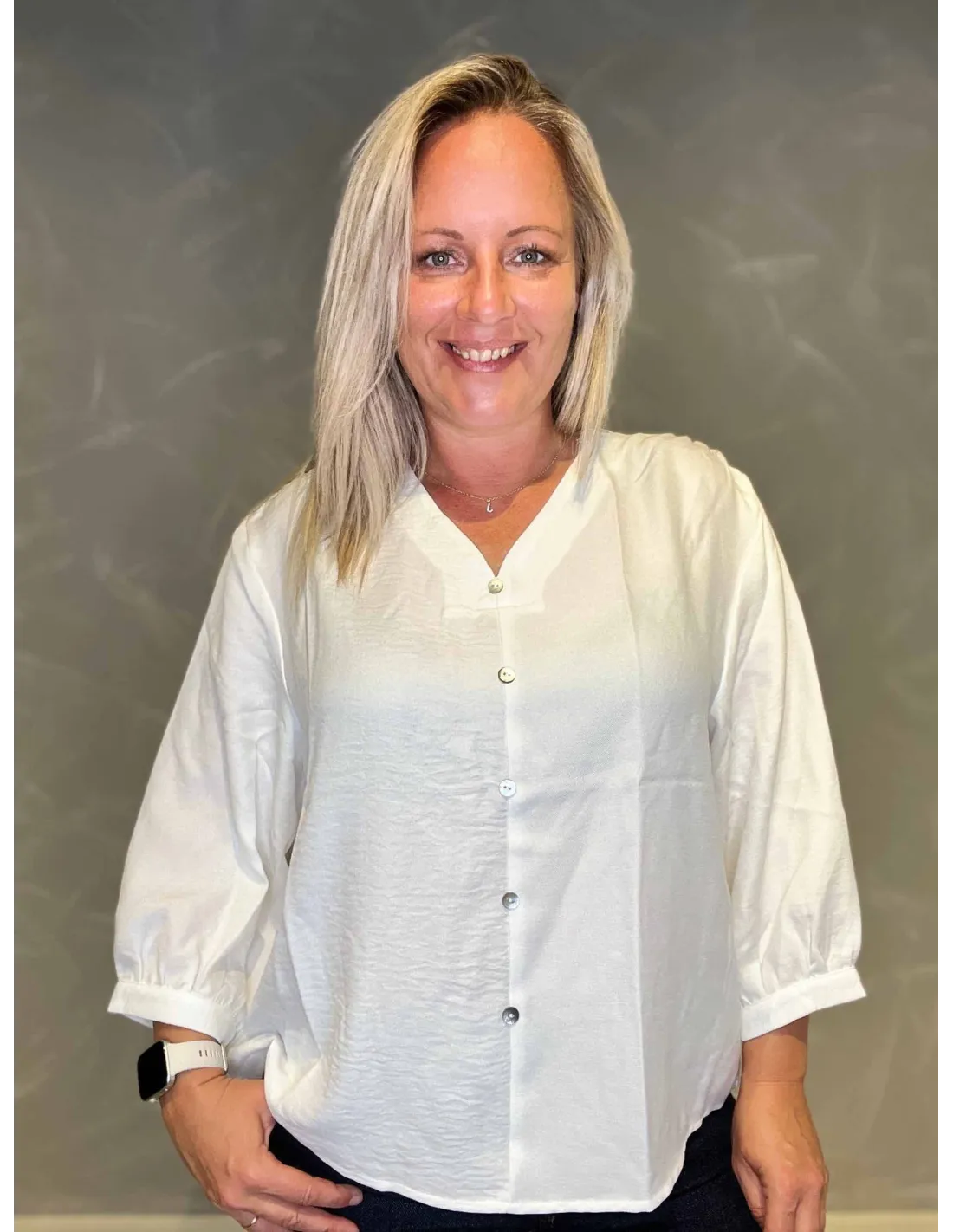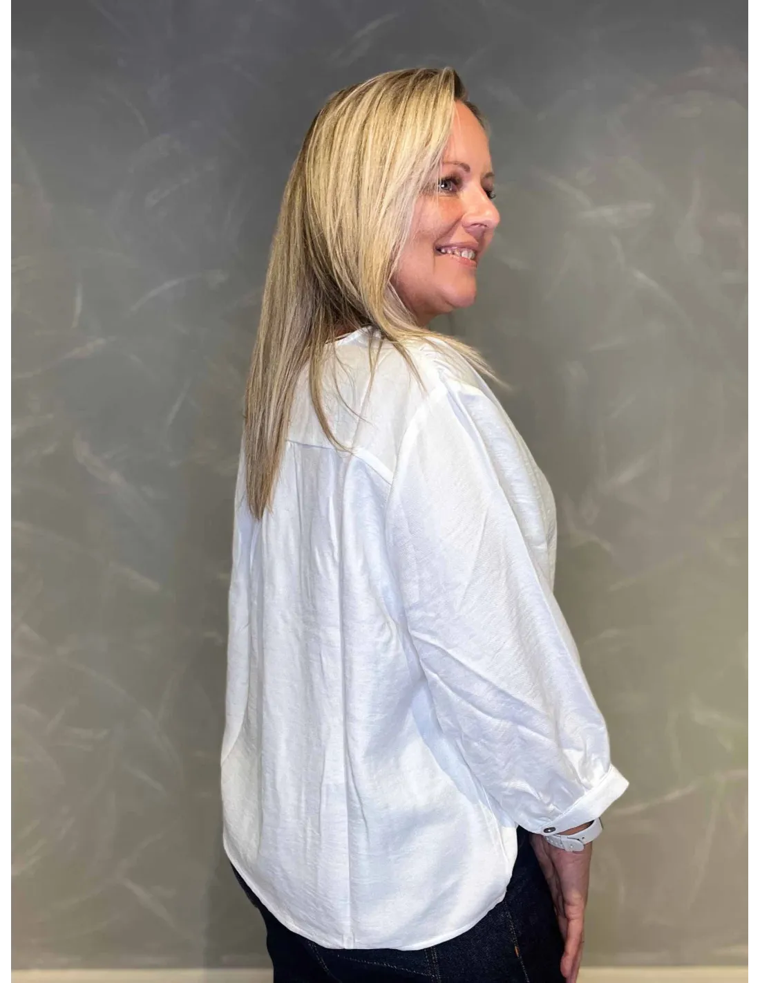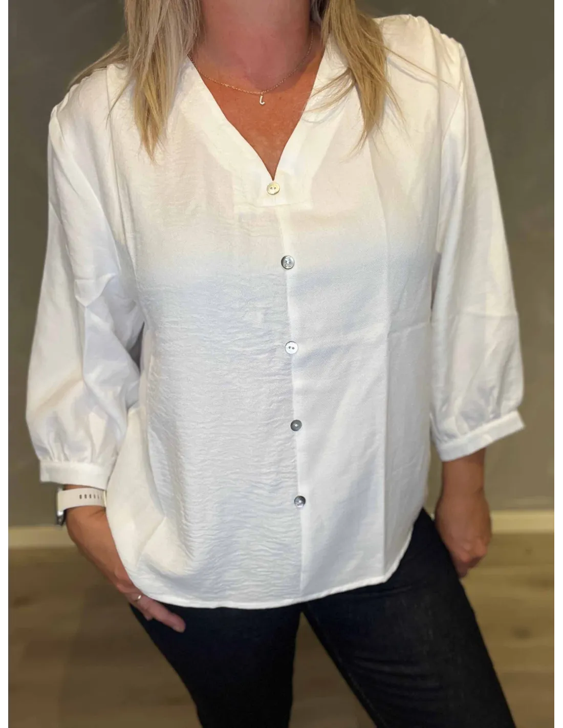 Kinakraven og de smukke pynteknapper skaber et unikt og feminint look i en klassisk hvid.