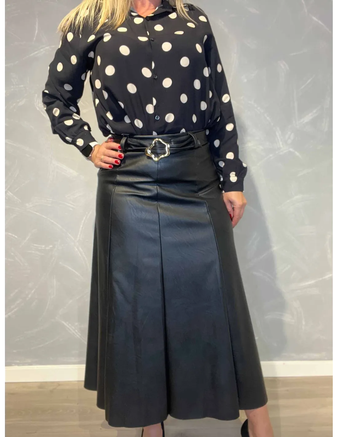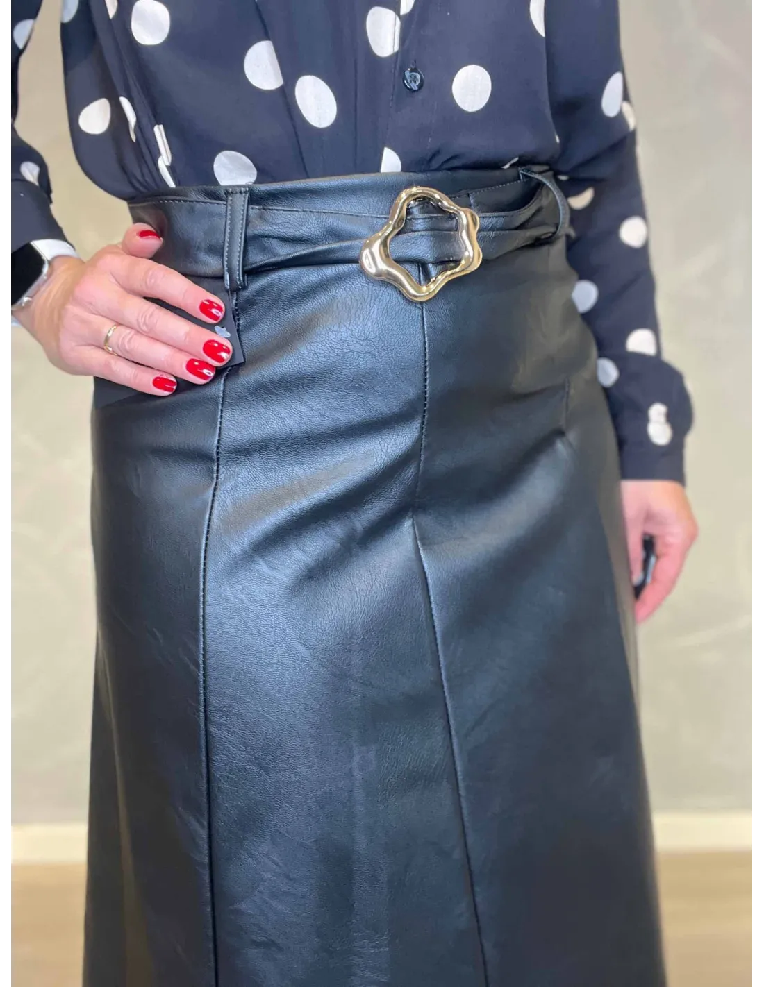 Læderlook nederdel med bælte til kvinder i brun