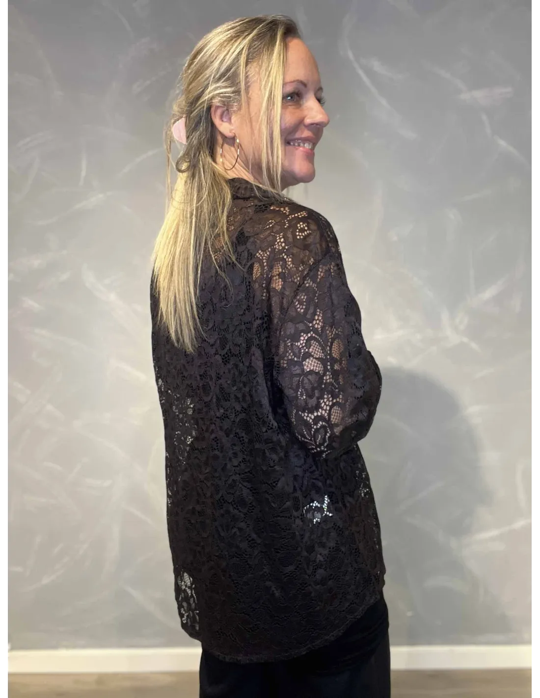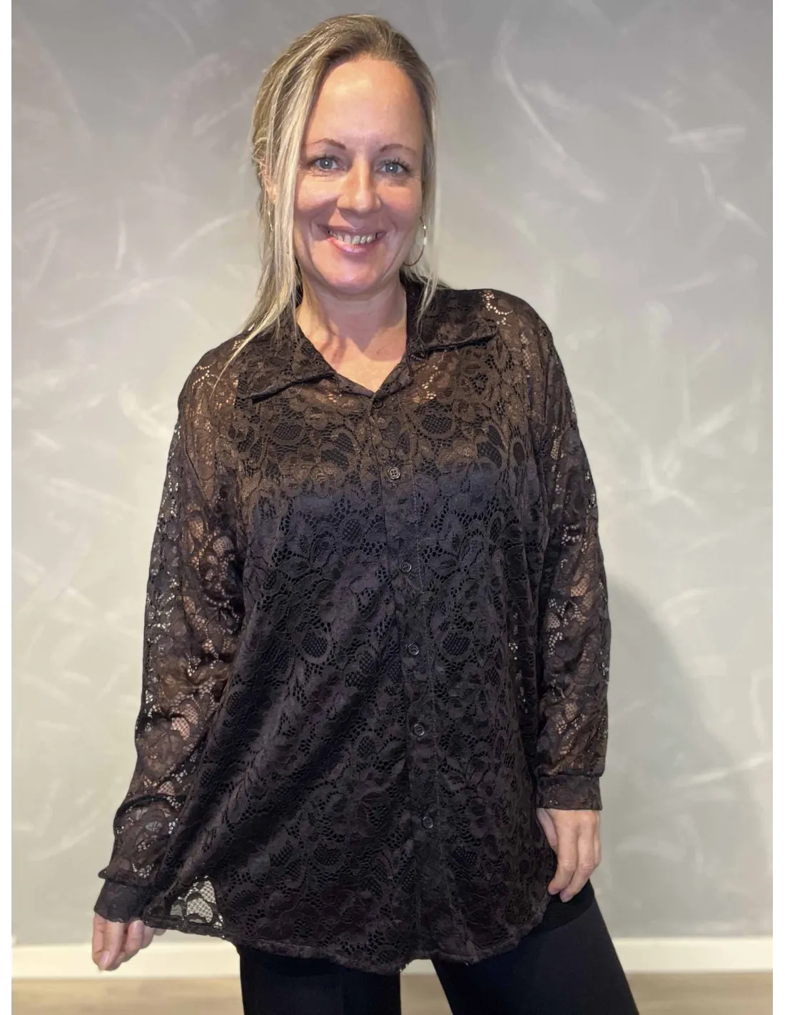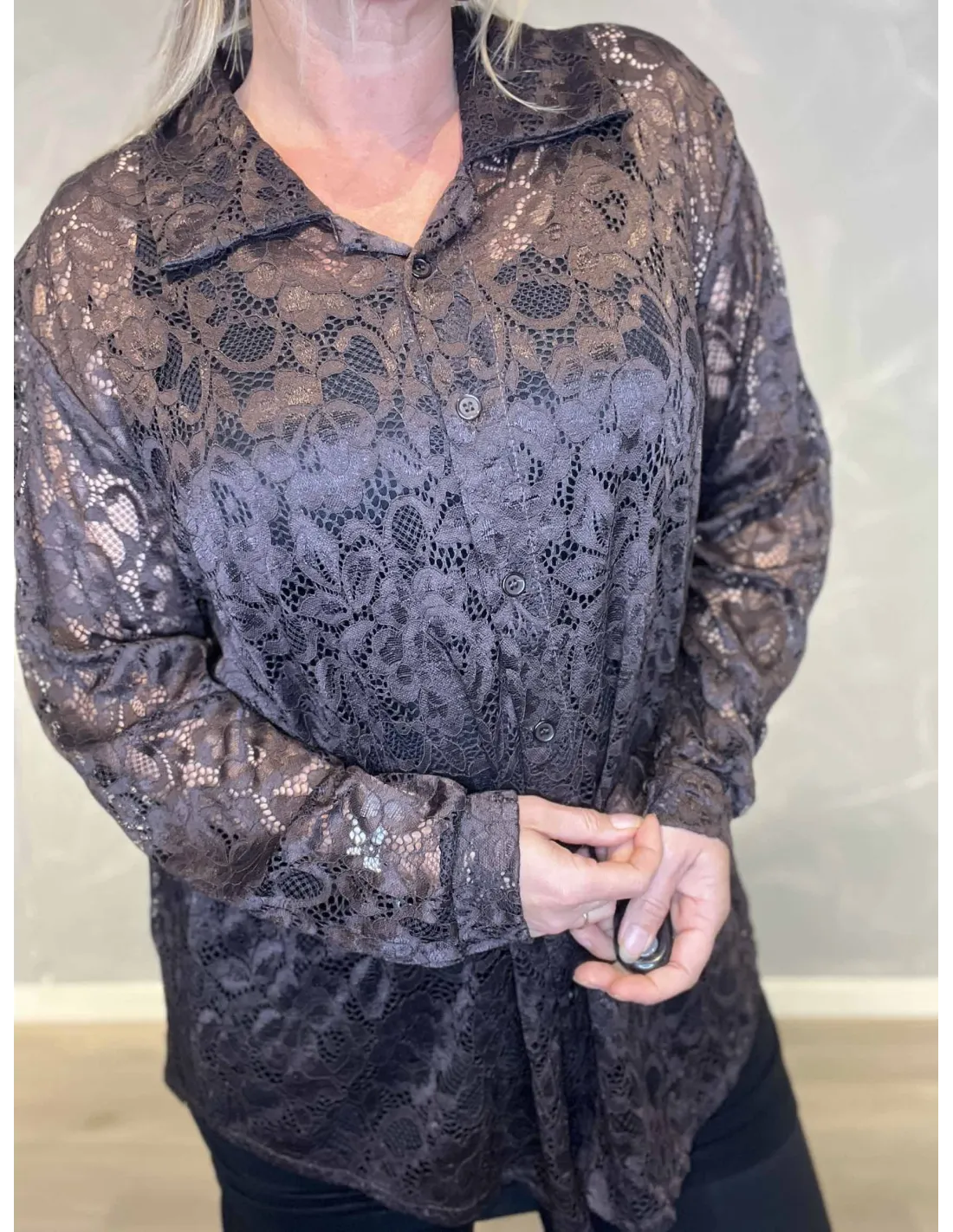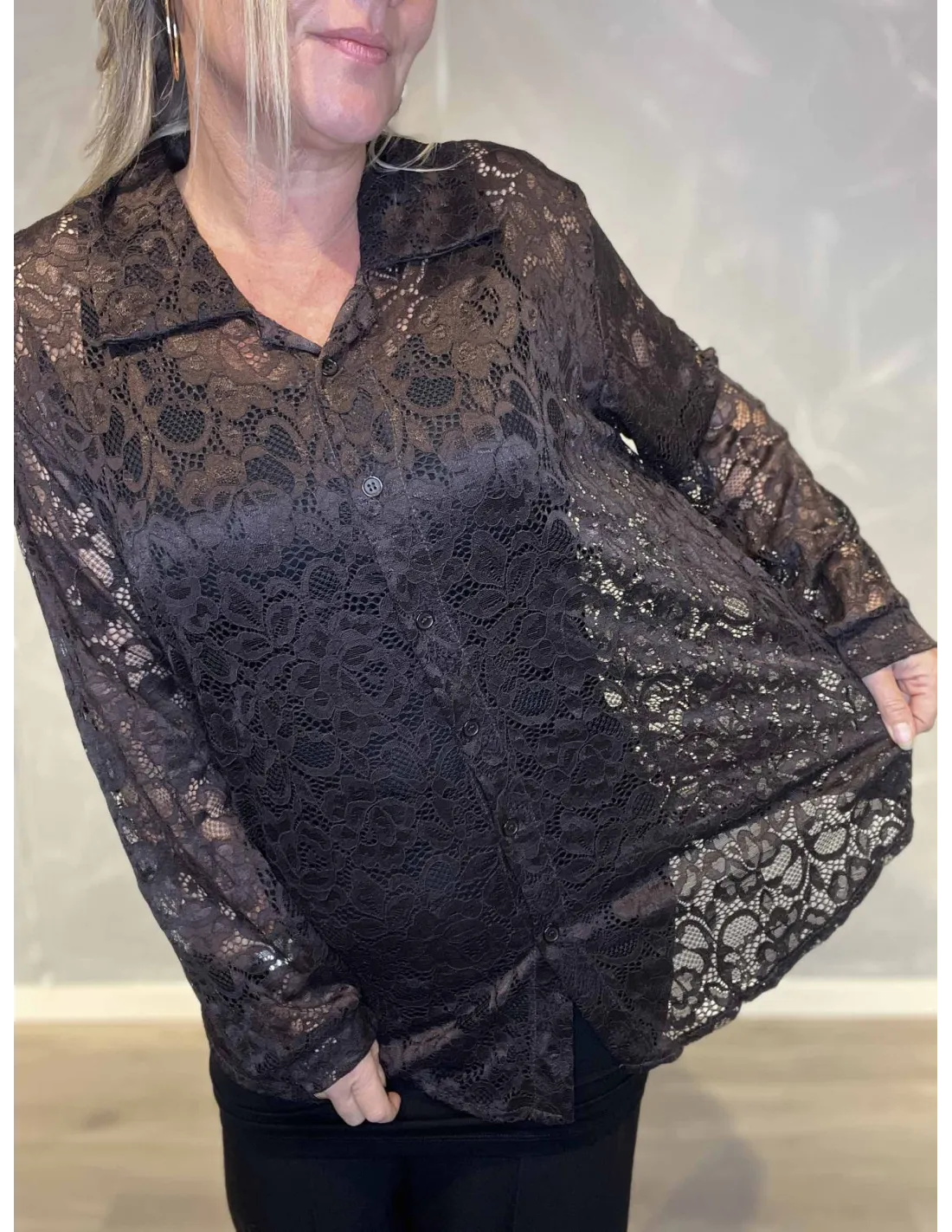 ✓ Gennemsigtig blondeskjorte