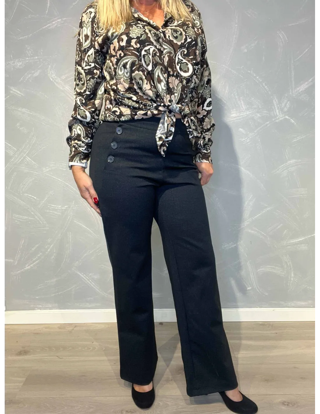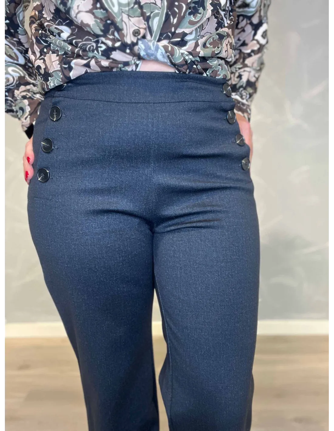 Disse straight leg bukser med knapper til kvinder fra TIPPY Collection er fremstillet i en blanding af 56% polyester, 30% viskose og 4% elastan