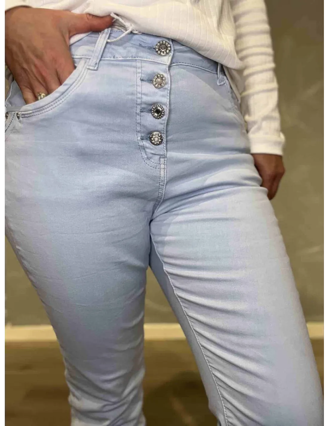 Knaplukningen foran fuldender det klassiske jeansdesign.