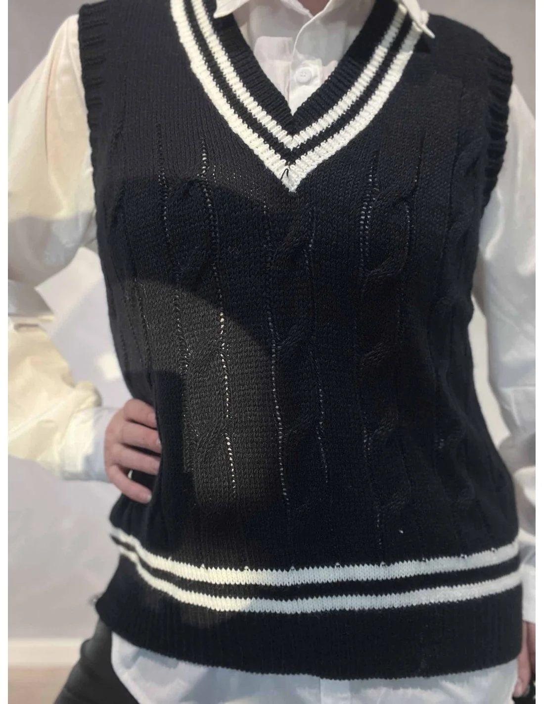Denne kabelstrik slipover til kvinder fra Tippy Collection er fremstillet i acryl med elastan.