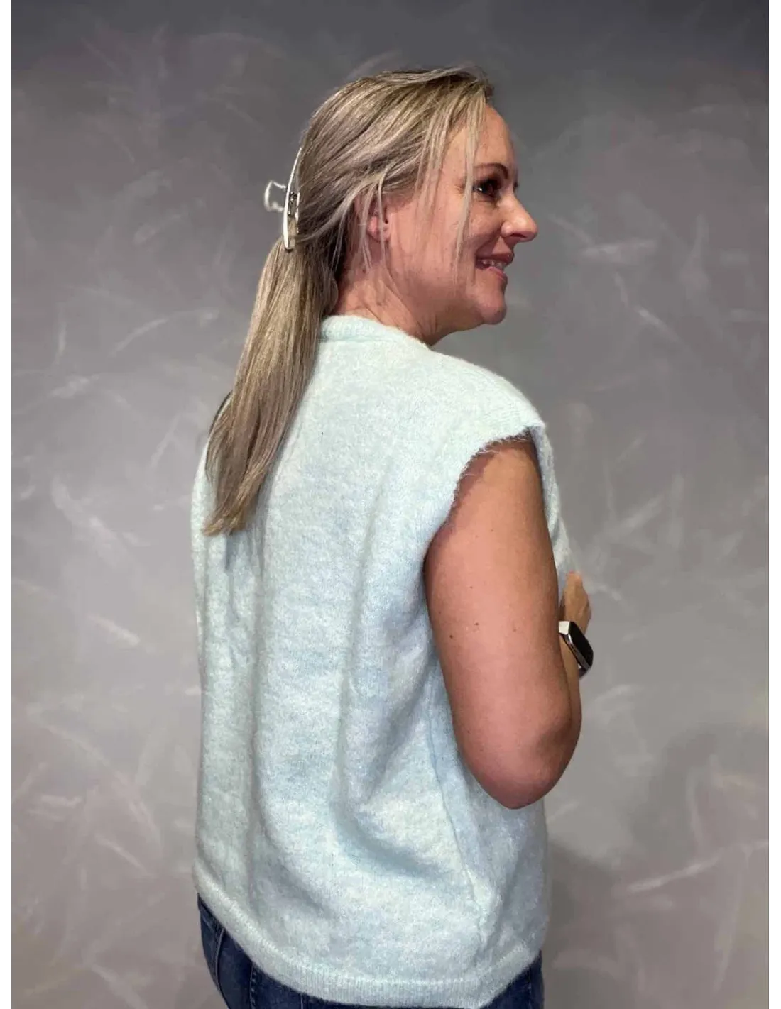 Ærmeløst design gør den nem at style lag på lag.