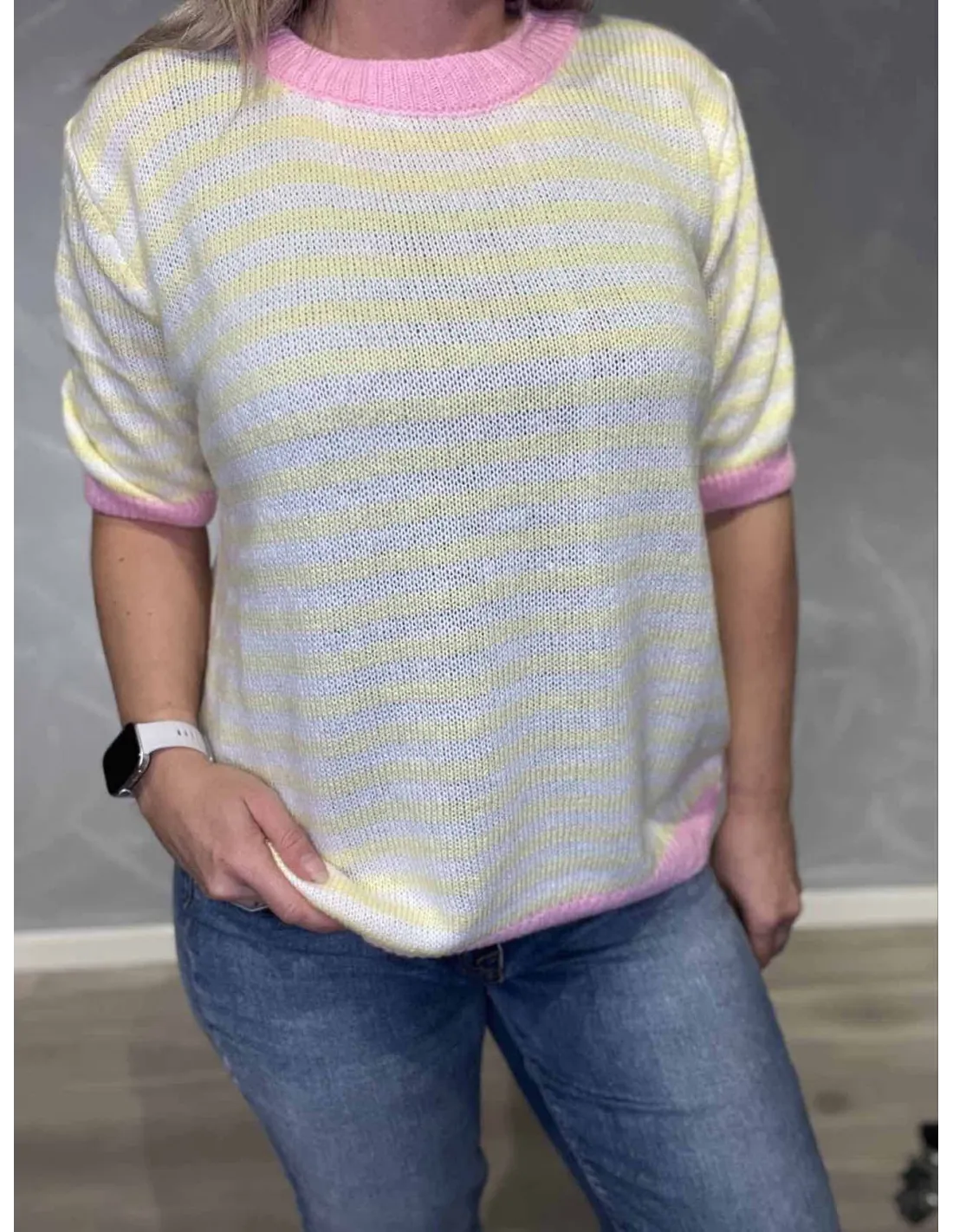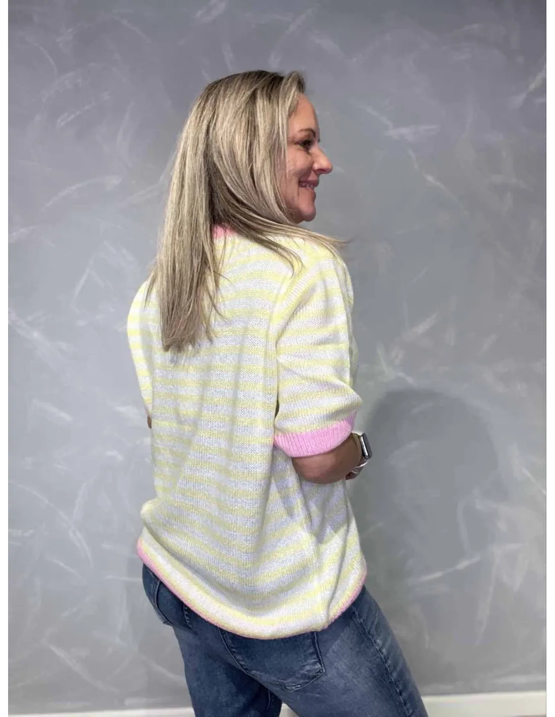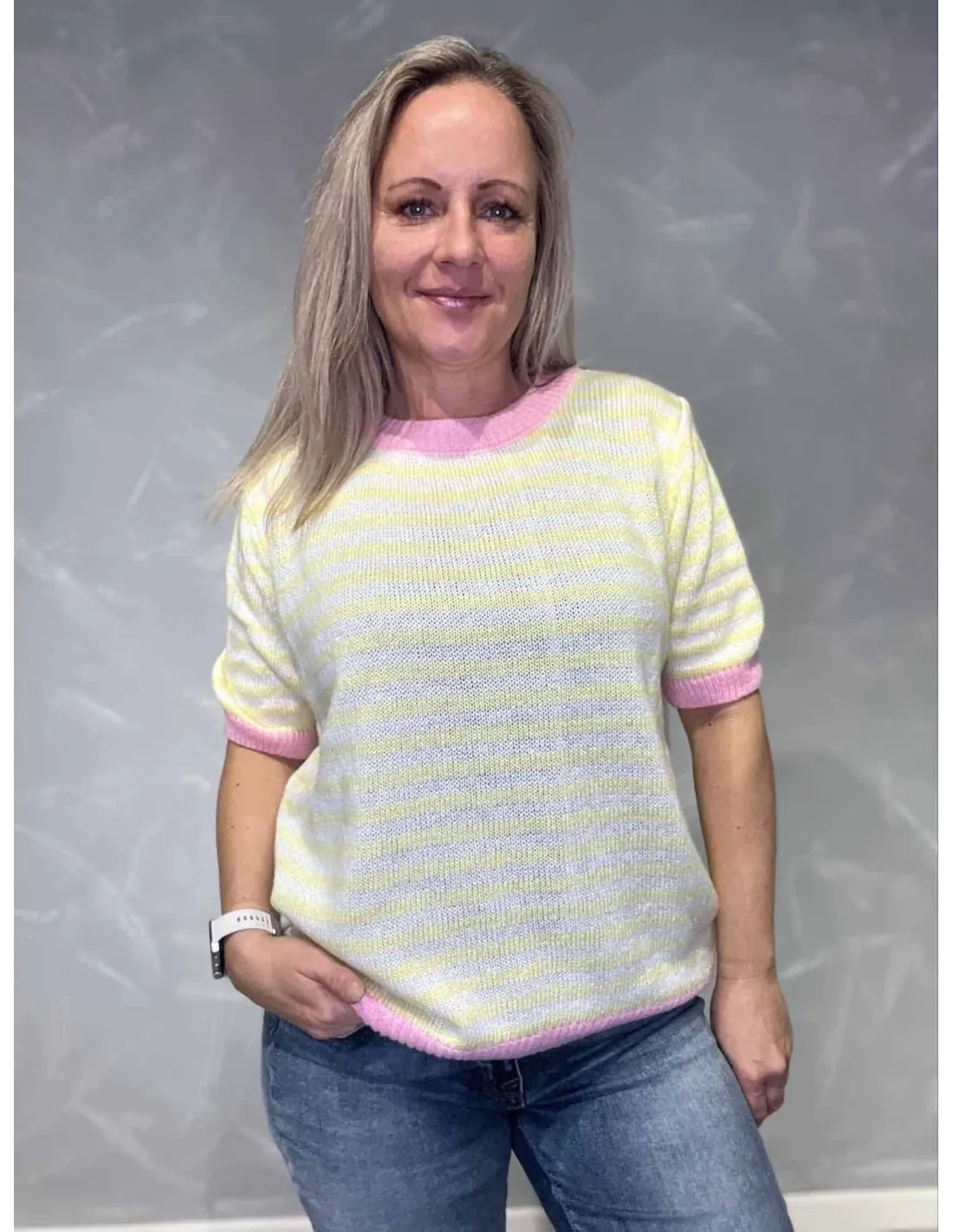 Denne stribede kortærmede strik fra Tippy Collection er fremstillet i en let og behagelig kvalitet.