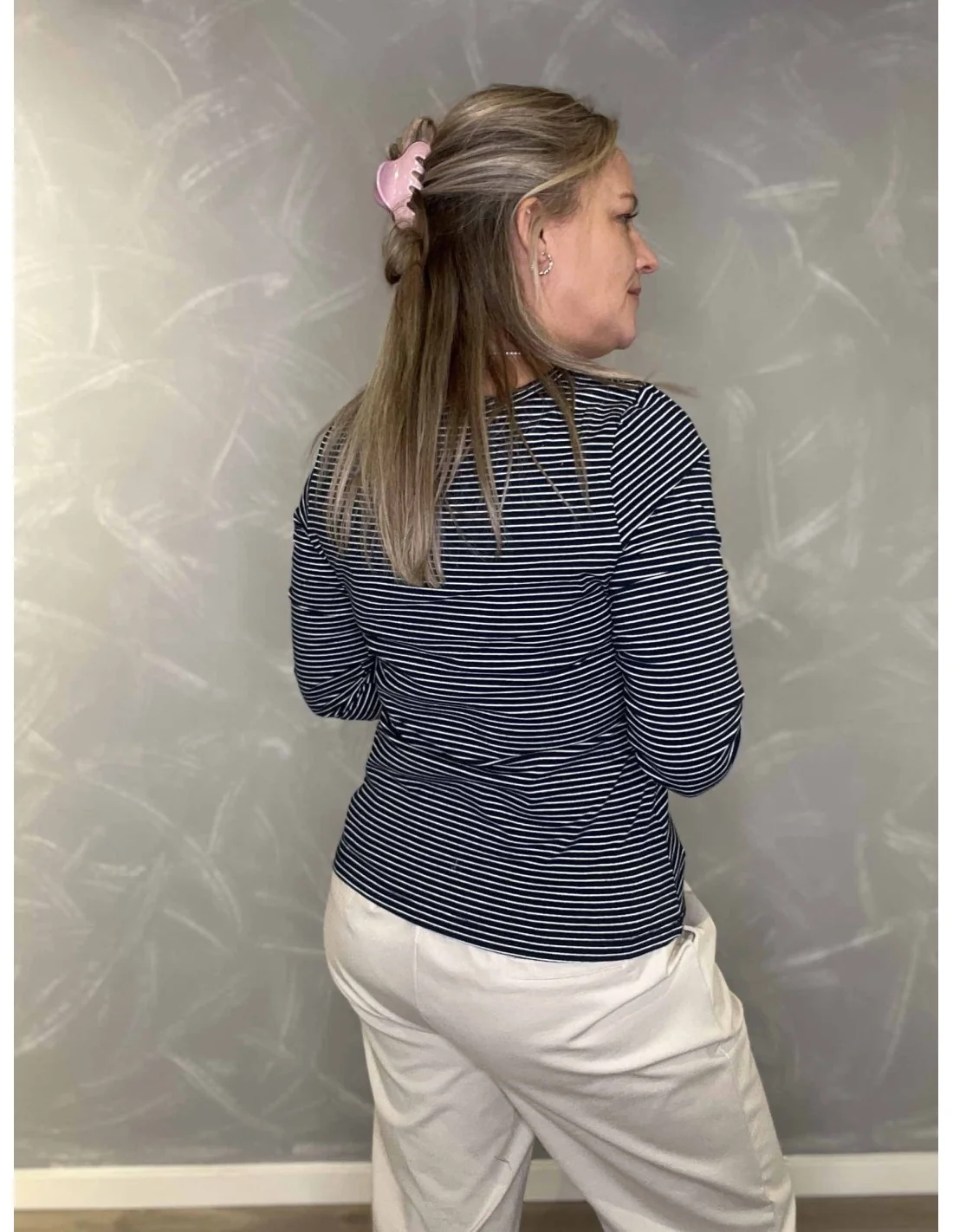 Bagside af navy/milk stribet t-shirt til kvinder – TIPPY