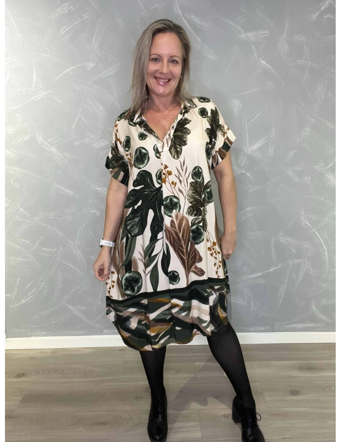 Denne botaniske kjole til kvinder fra TIPPY Collection er fremstillet i 100% viskose.