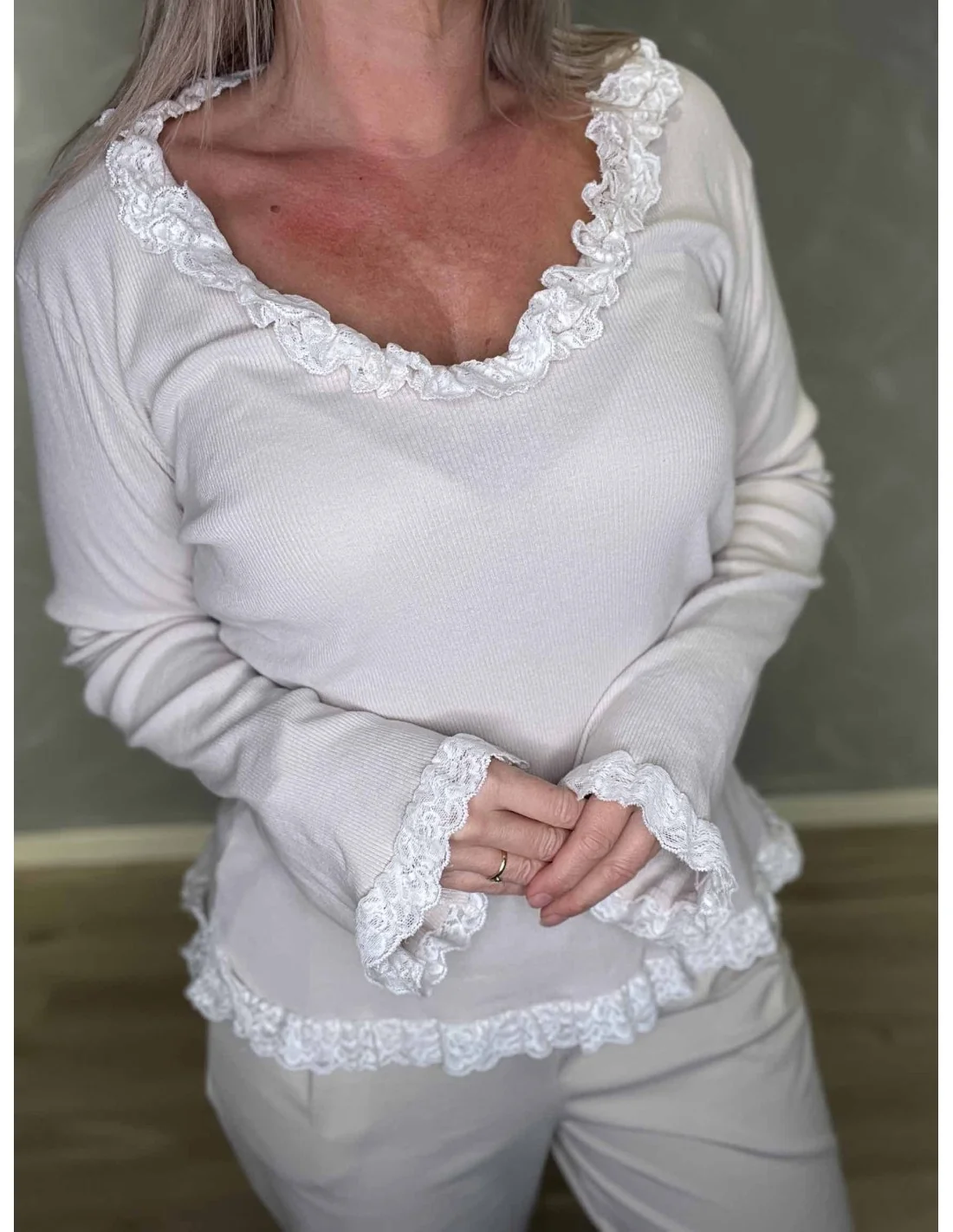 Denne rib bluse til kvinder fra TIPPY Collection er fremstillet i bomuld med elastan.