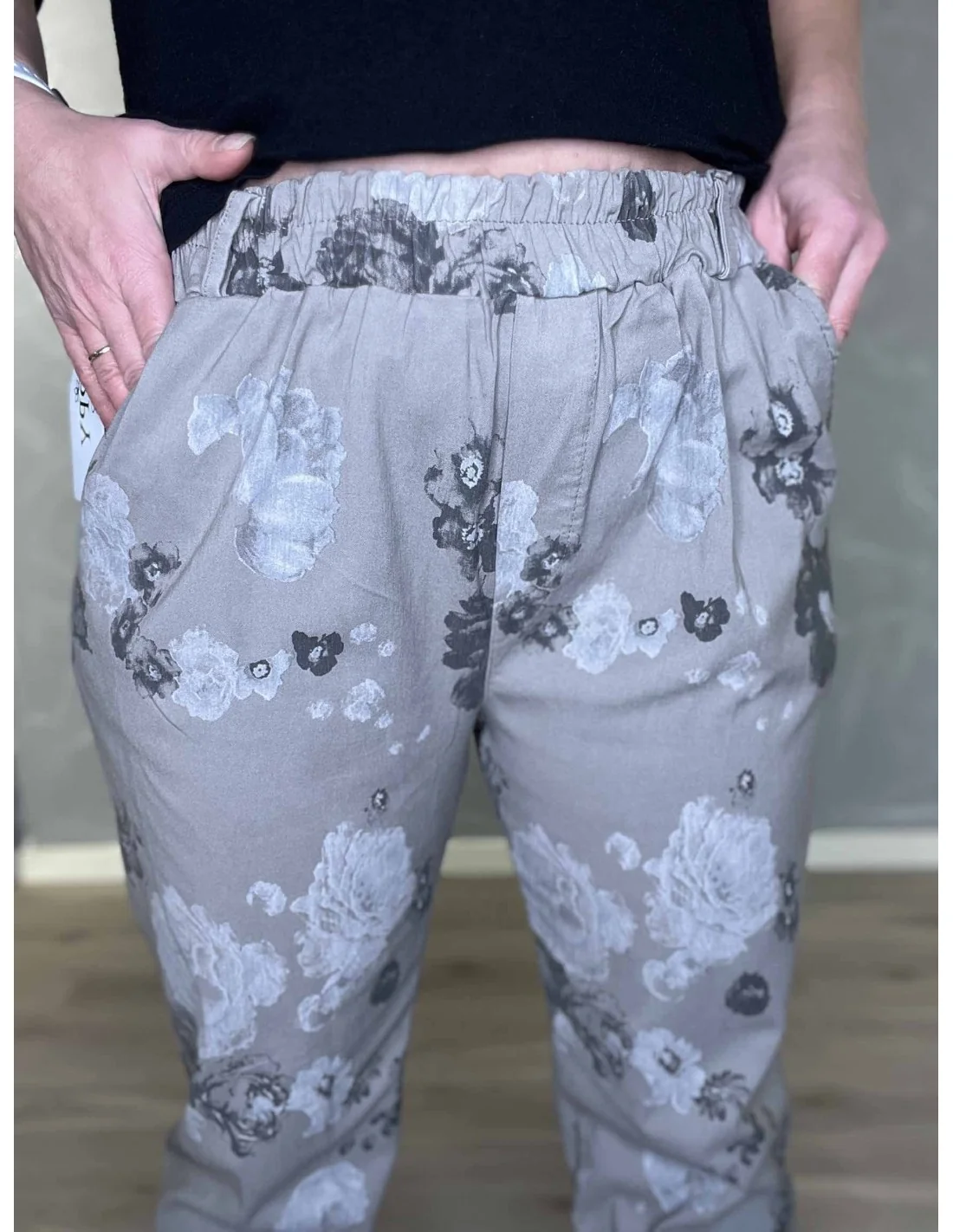 Stræk bukser med blomster | Grå | 35963