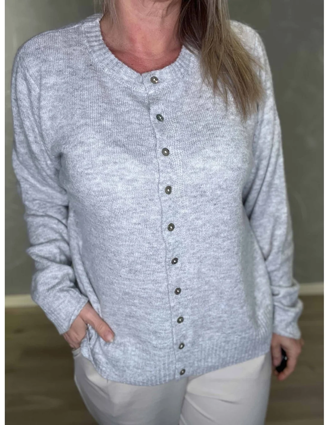 Denne strik cardigan til kvinder fra TIPPY Design er fremstillet i en let og behagelig materialeblanding.
