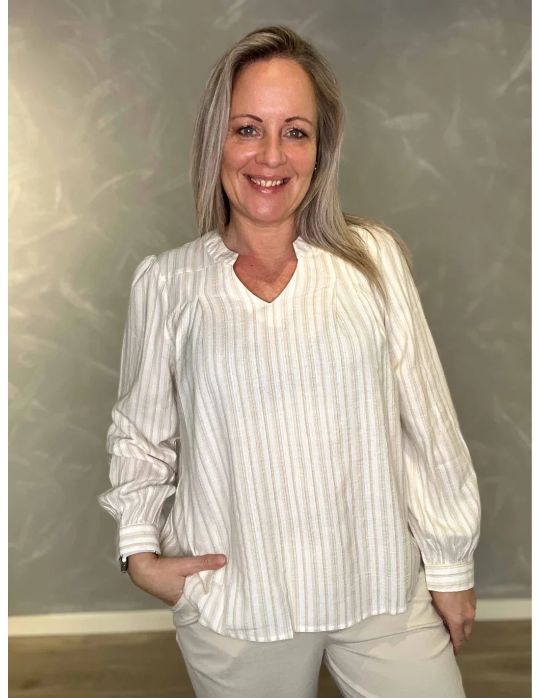 V-hals giver et flatterende og elegant look.