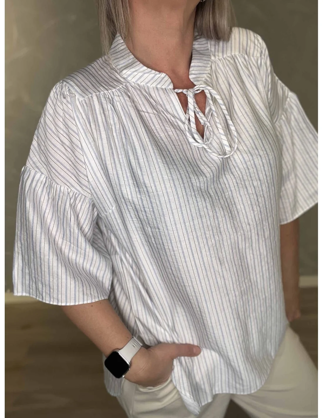 Bluse med klokkeærmer og snøre | Hvid | 26020