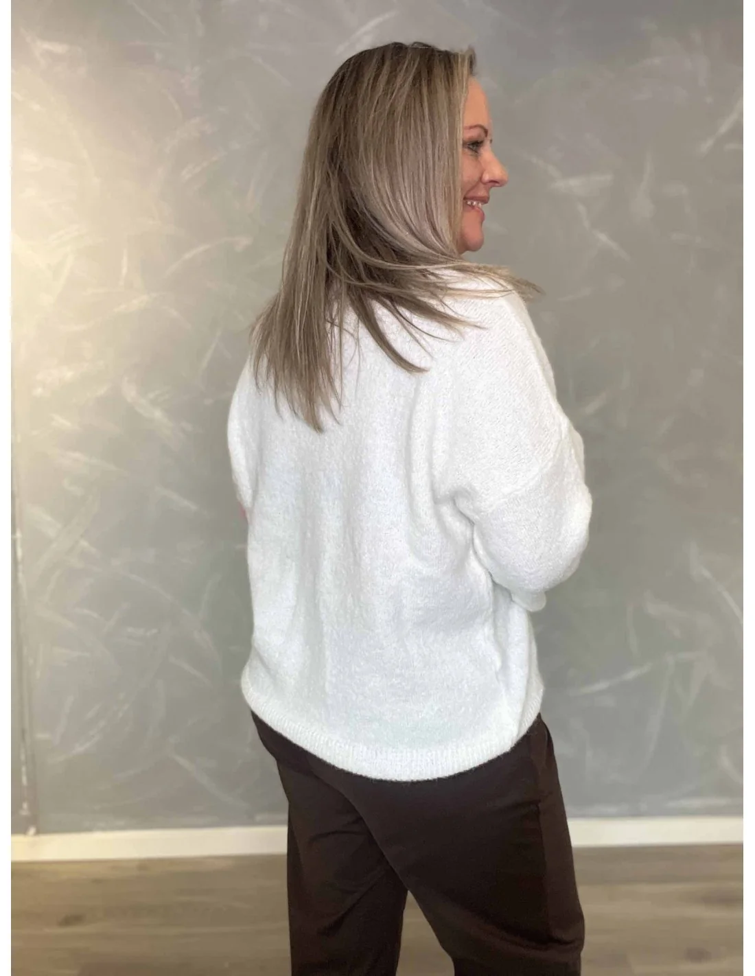 “Hvid strik bluse med hjerter til kvinder – Tippy Collection