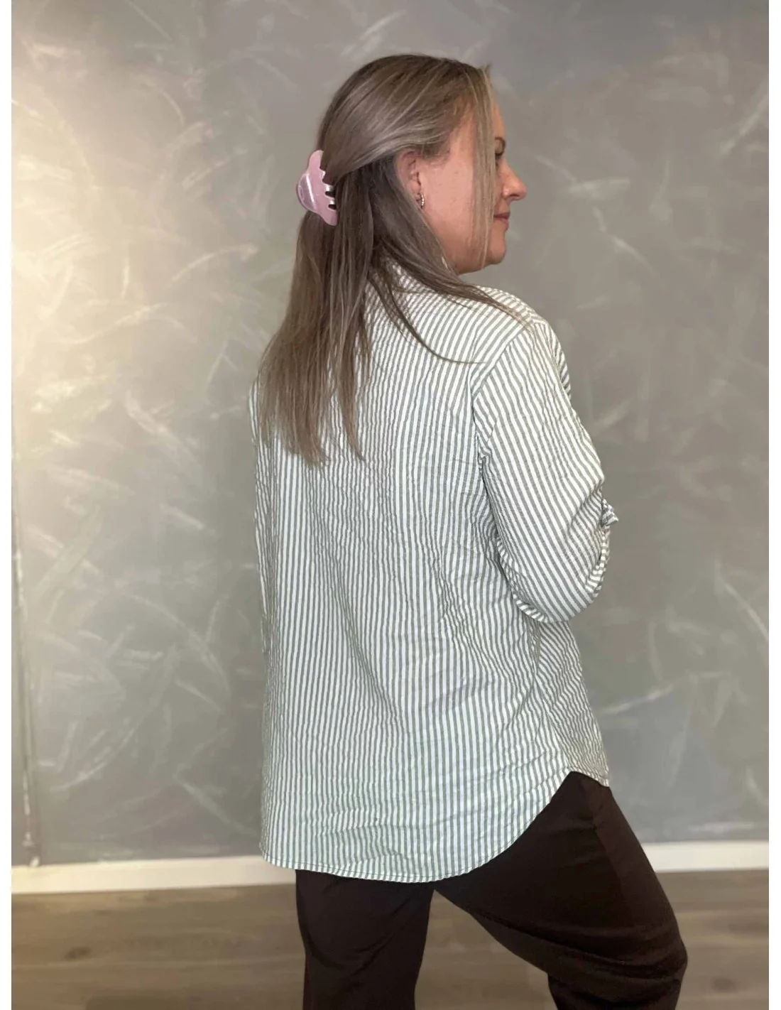 Den skyfarvede strib giver et klassisk og feminint udtryk.