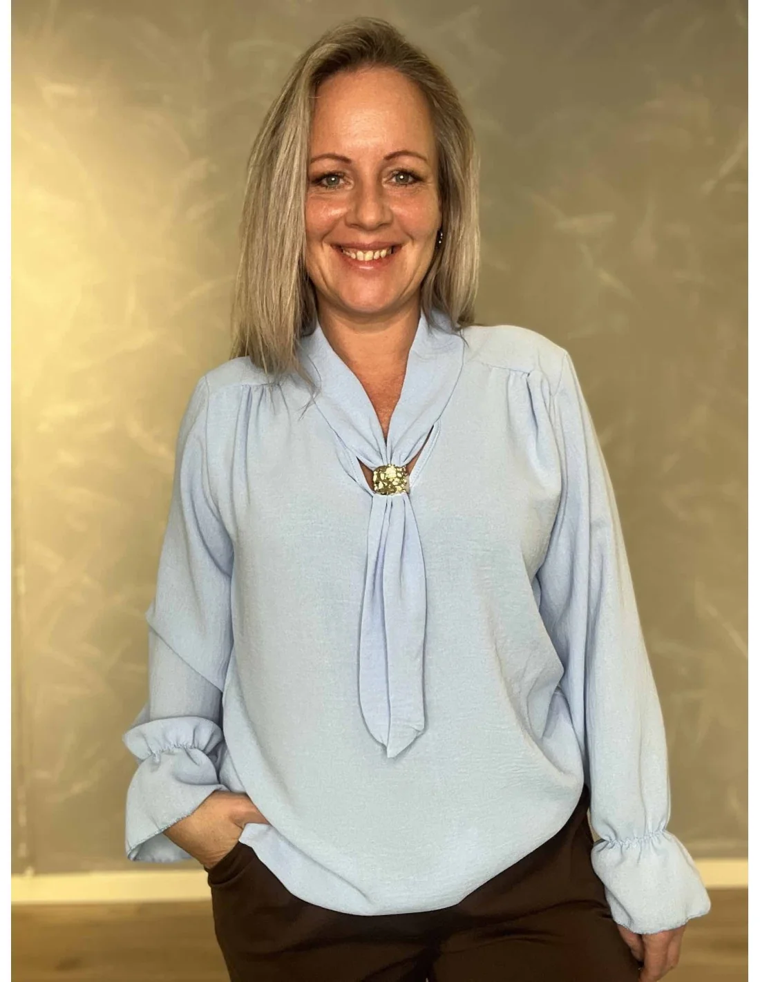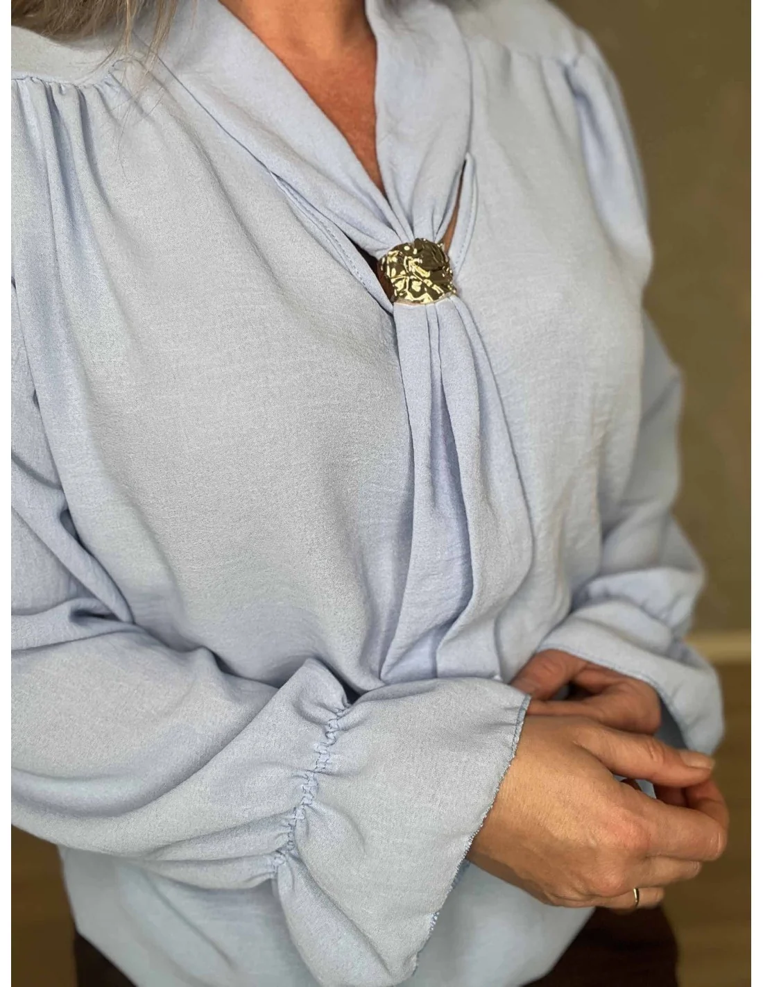 Bluse med smykkespænde ved v-udskæring | Sky | 36001