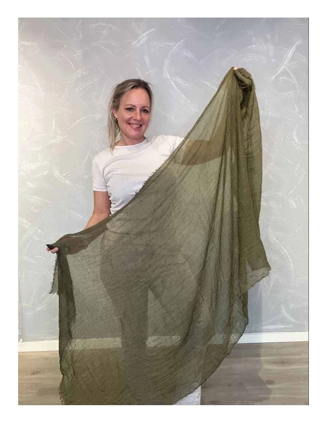 Dette tørklæde til kvinder fra TIPPY italian select er fremstillet i 70% viskose og 30% bomuld.