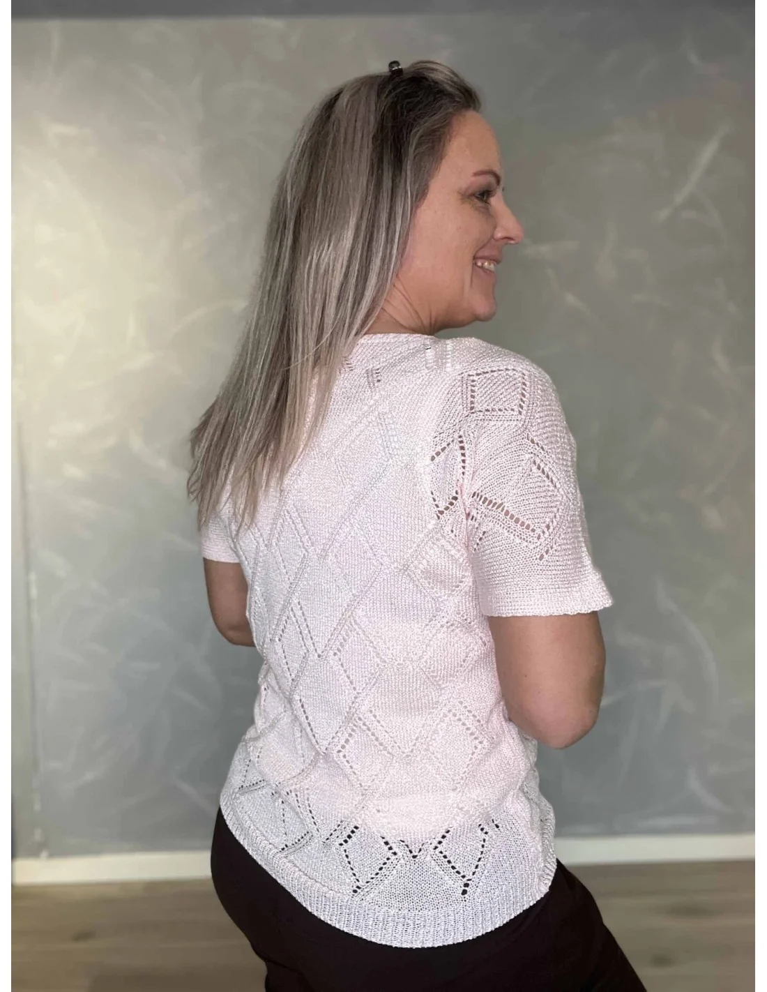 Rosa hæklet bluse kortærmet til kvinder – TIPPY Collection
