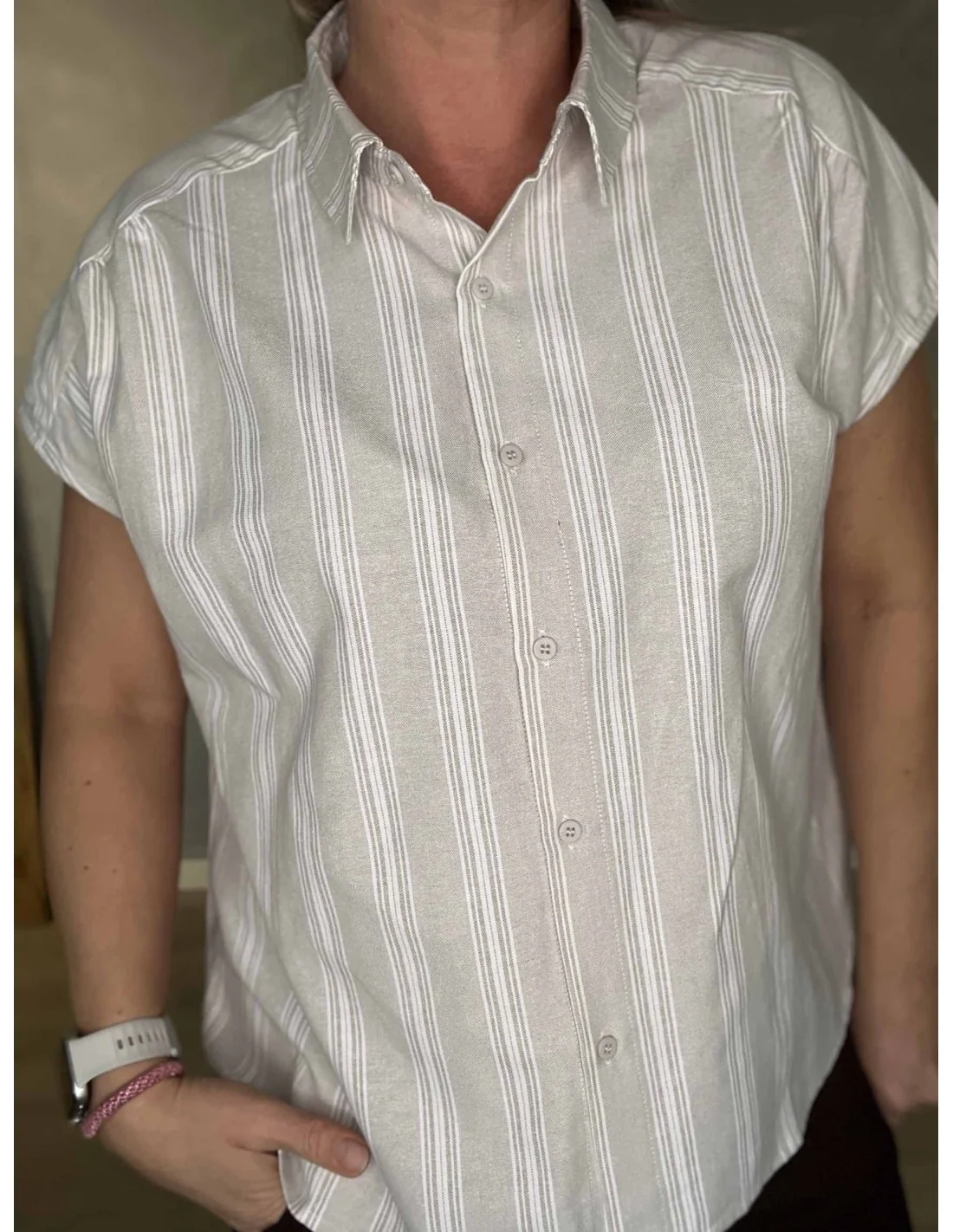 Beige stribet box skjorte til kvinder – Design by TIPPY