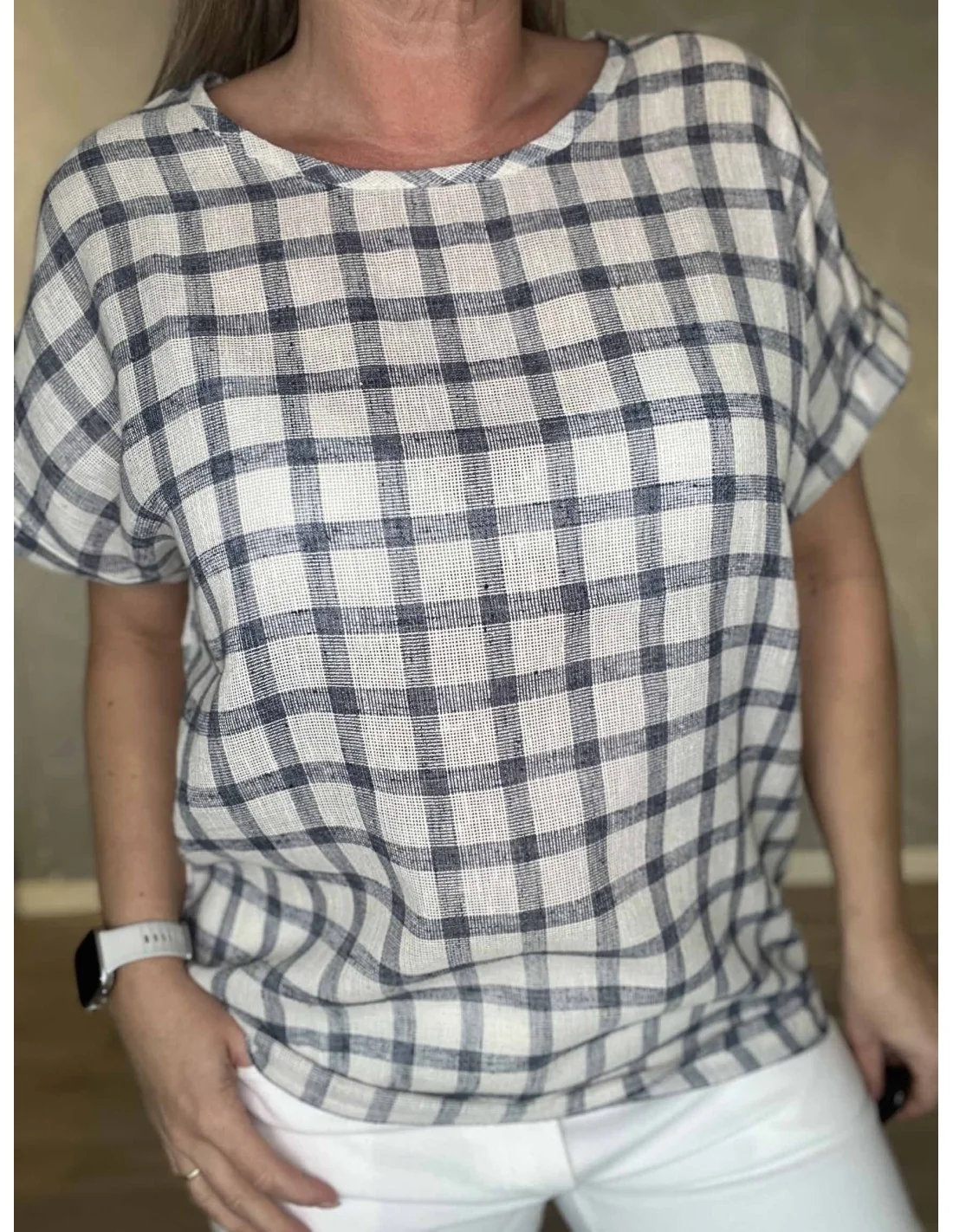 Denne bluse til kvinder fra Design by Tippy er fremstillet i bomuld, hør og polyester.