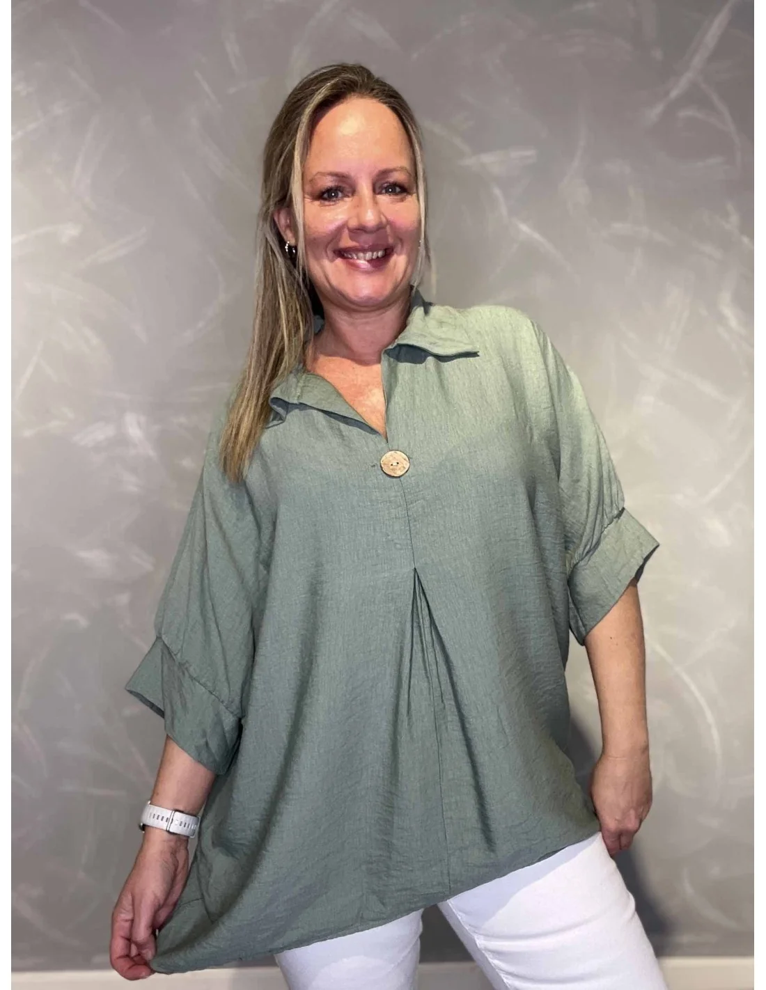 Denne bluse til kvinder fra TIPPY Collection er fremstillet i 95% viskose og 5% elastan.