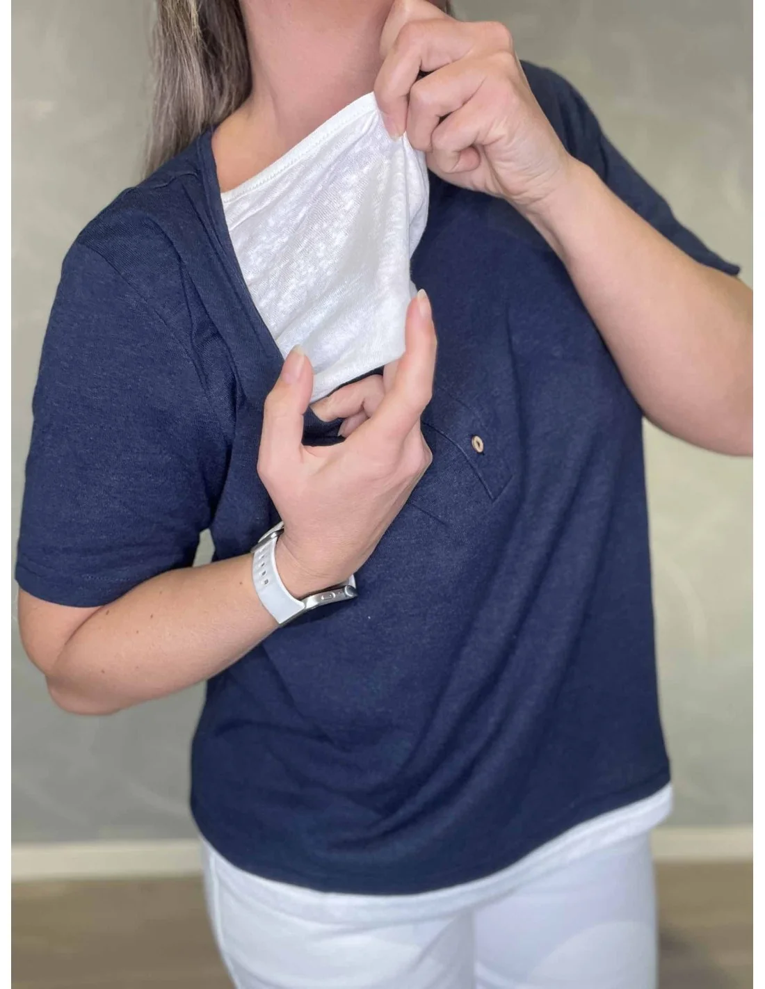 Den lyseblå farve giver et let og afslappet udtryk.