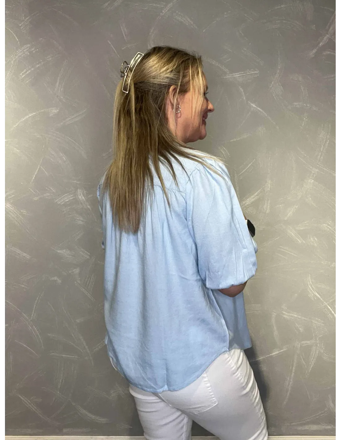 Denne bluse til kvinder fra TIPPY Design er fremstillet i 70% viskose og 30% hør.