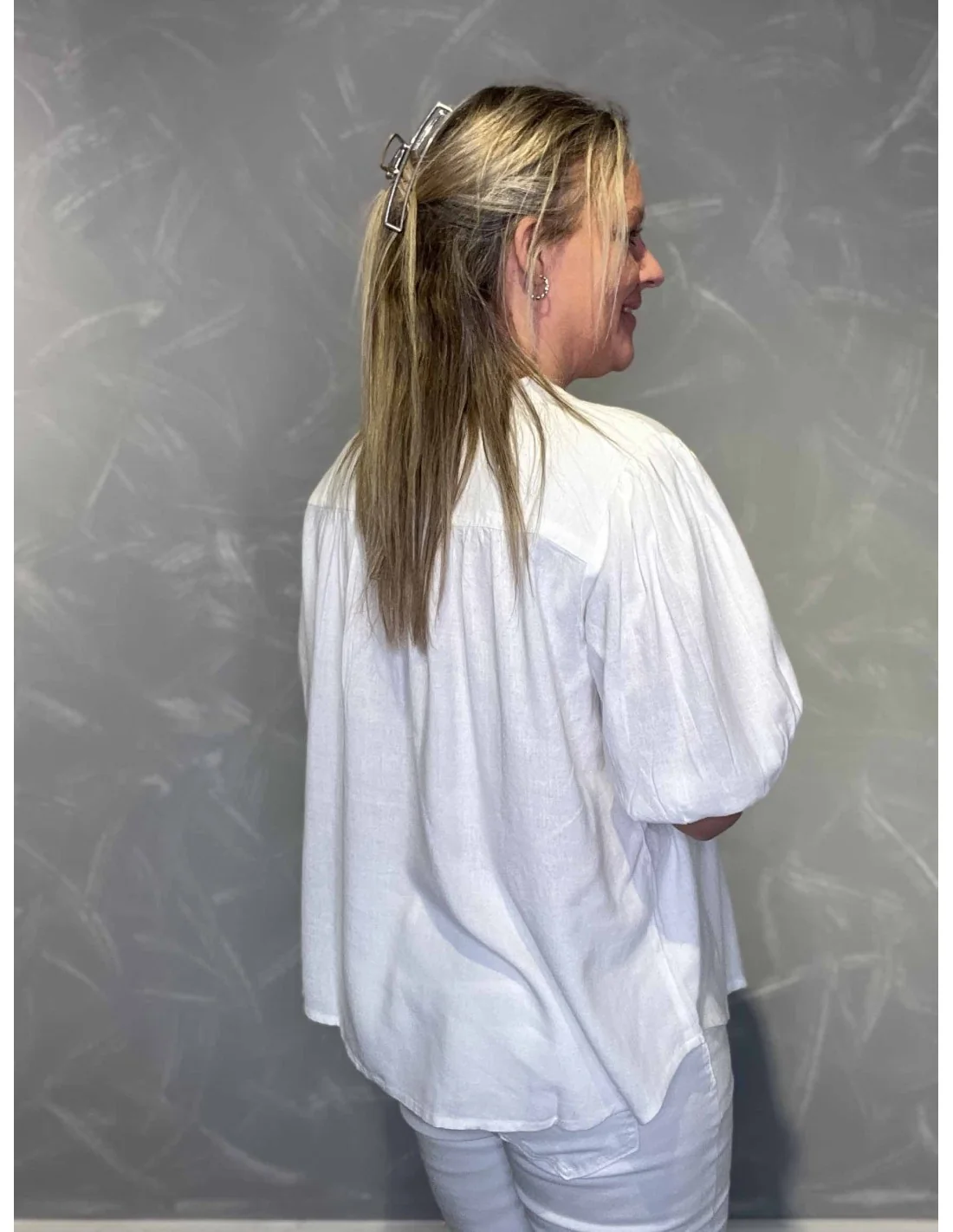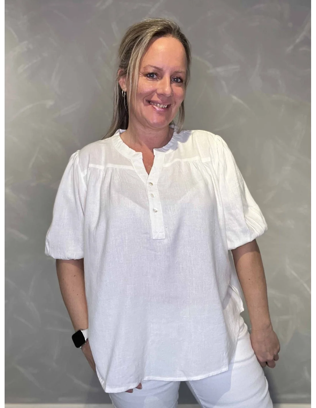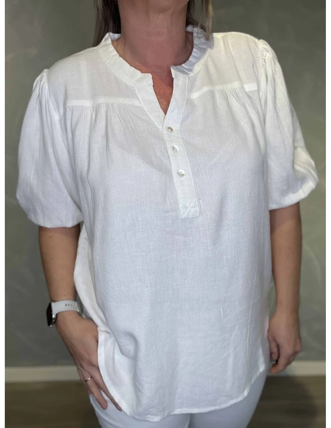 Denne bluse til kvinder fra TIPPY Design er fremstillet i 70% viskose og 30% hør.