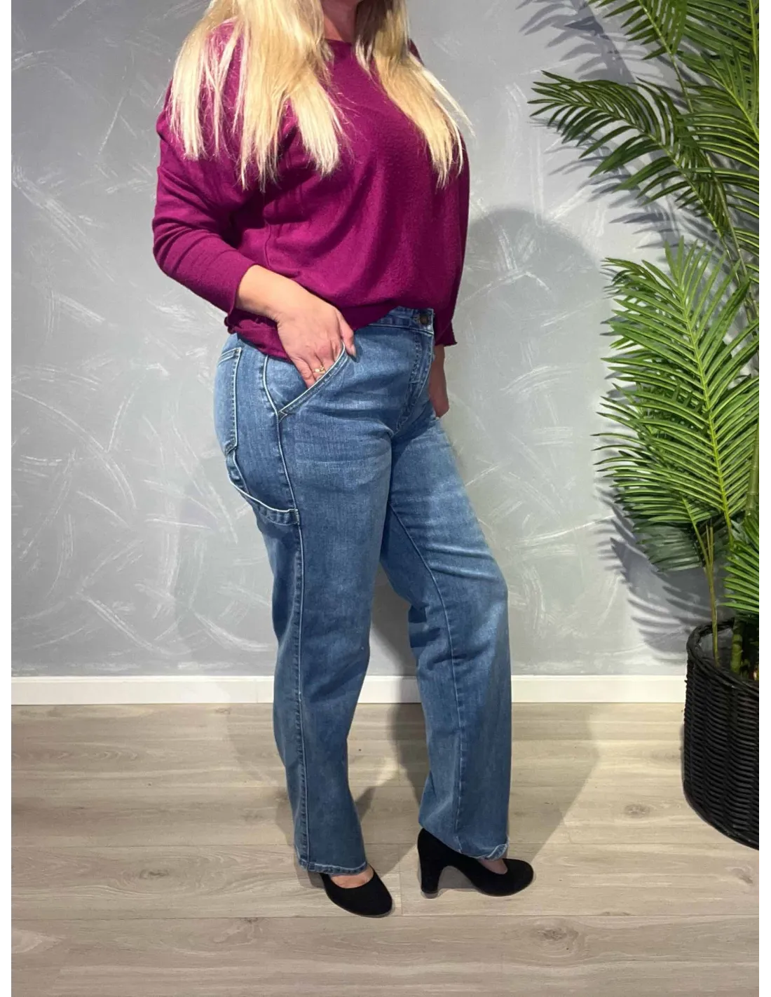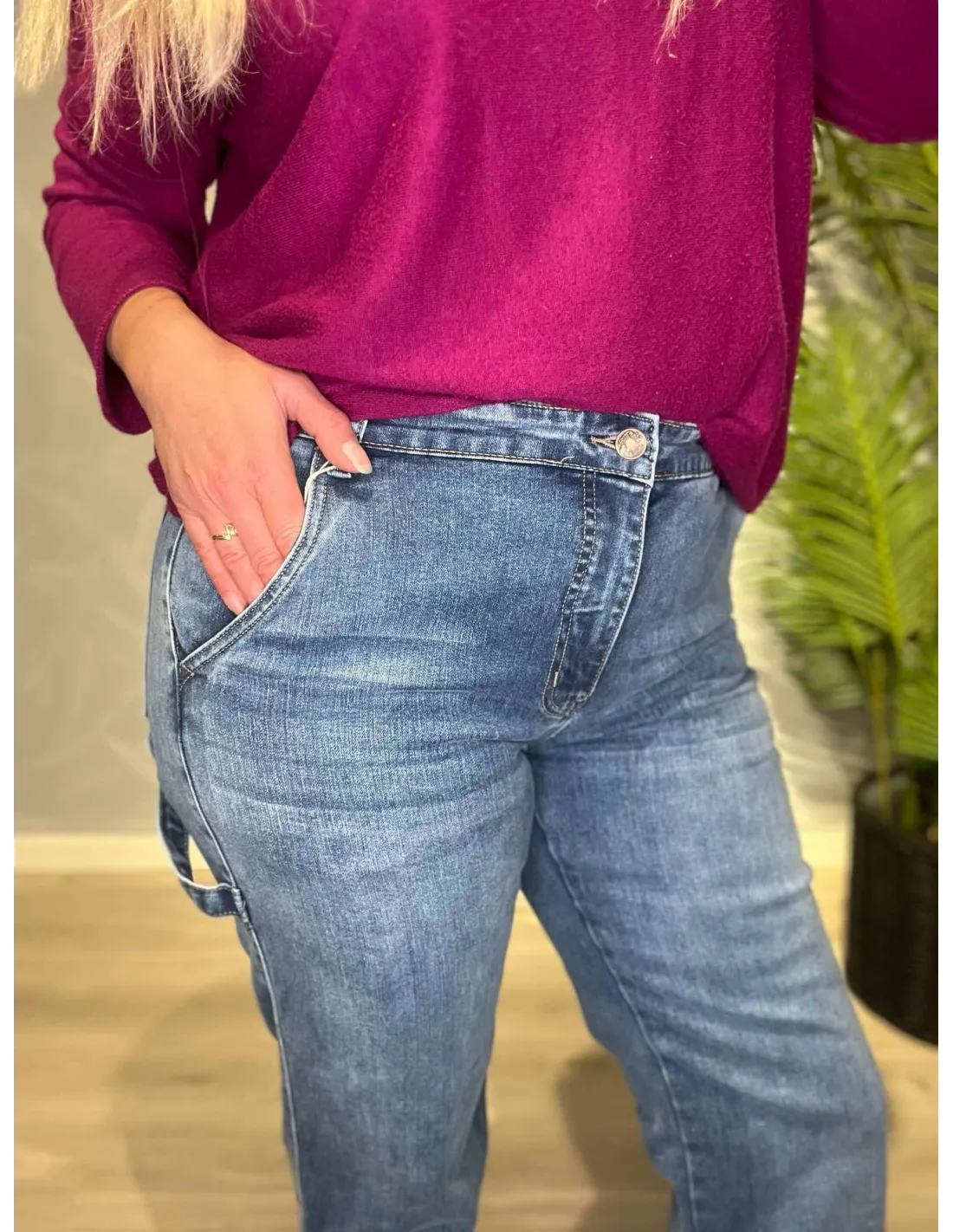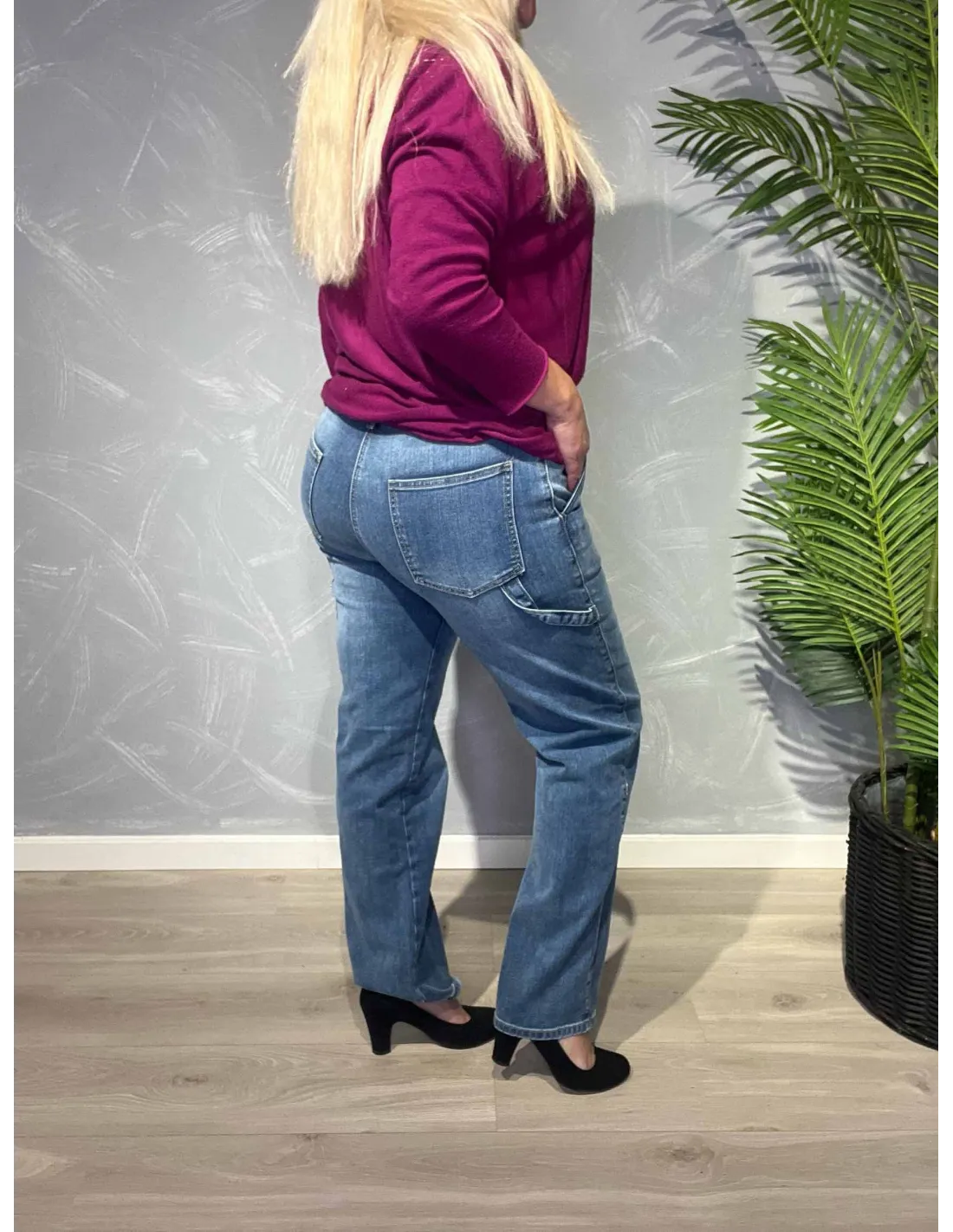 Den denim blå farve giver et klassisk og afslappet udtryk.